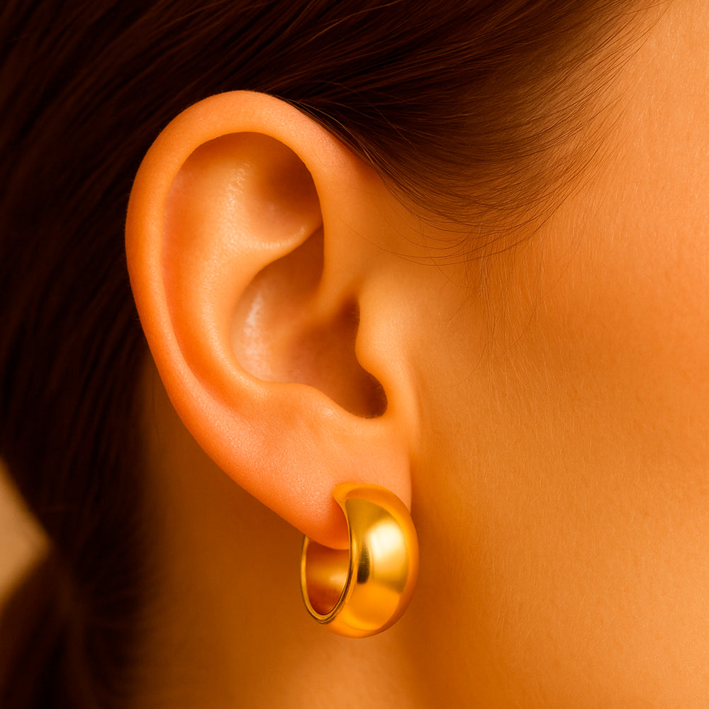 Cercei din argint 925, cercei rotunzi groși placați cu aur