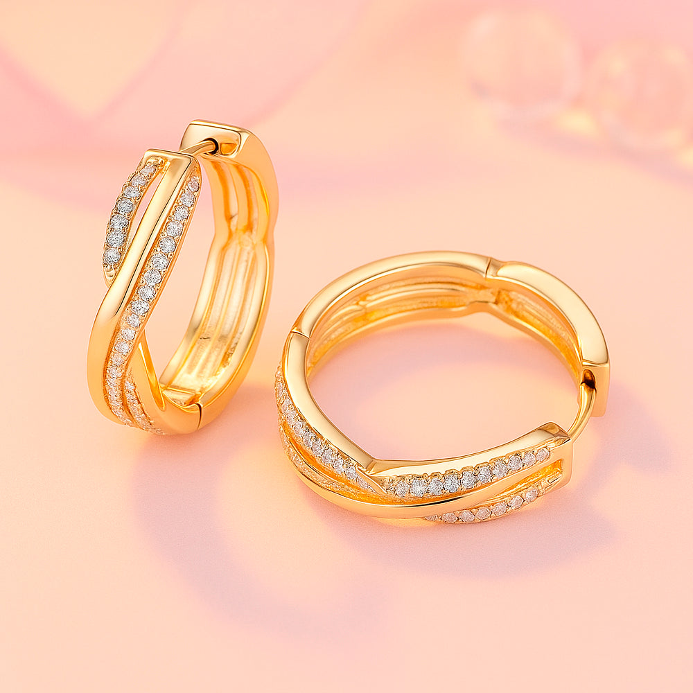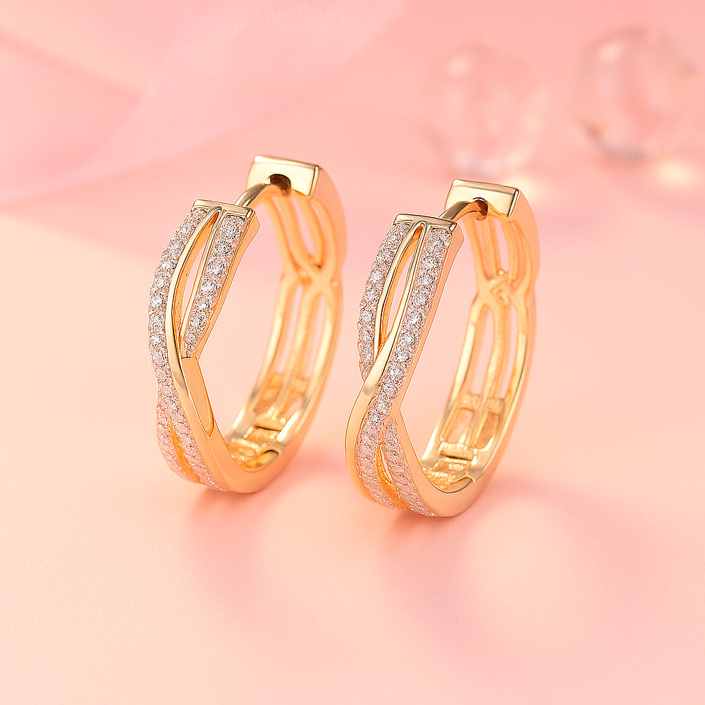 Cercei din oțel inoxidabil, placați cu aur, cu cercuri din zirconiu cubic, 2,4 cm
