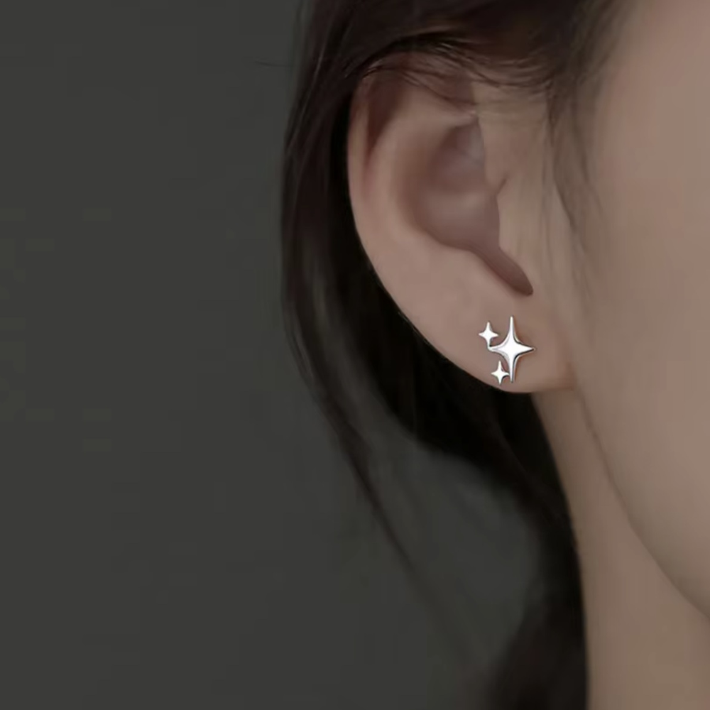 Cercei cu șurub din argint 925, Lonely Triple Star (set de 2 cercei diferiți)