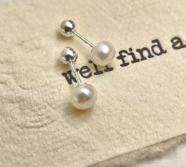 Cercei cu șurub din argint 925, mini perlă de apă dulce, 0,8 mm