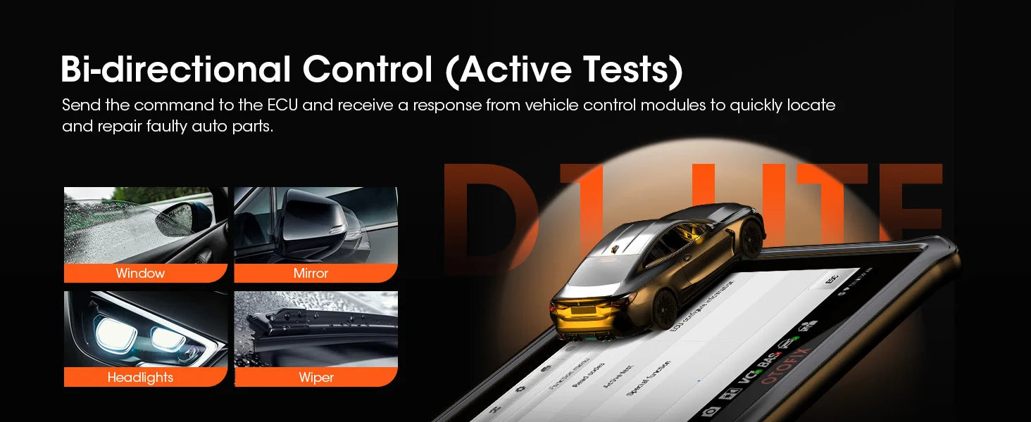 - Funcțiile de control bidirecțional pentru testele active permit teste funcționale specifice ale componentelor individuale direct pe vehicul.