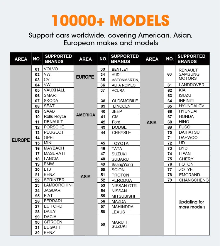 - Potrivit pentru ateliere comerciale, mecanici auto, administratori de flote auto și pasionați ambițioși de bricolaj care solicită funcții de diagnosticare profesionale.