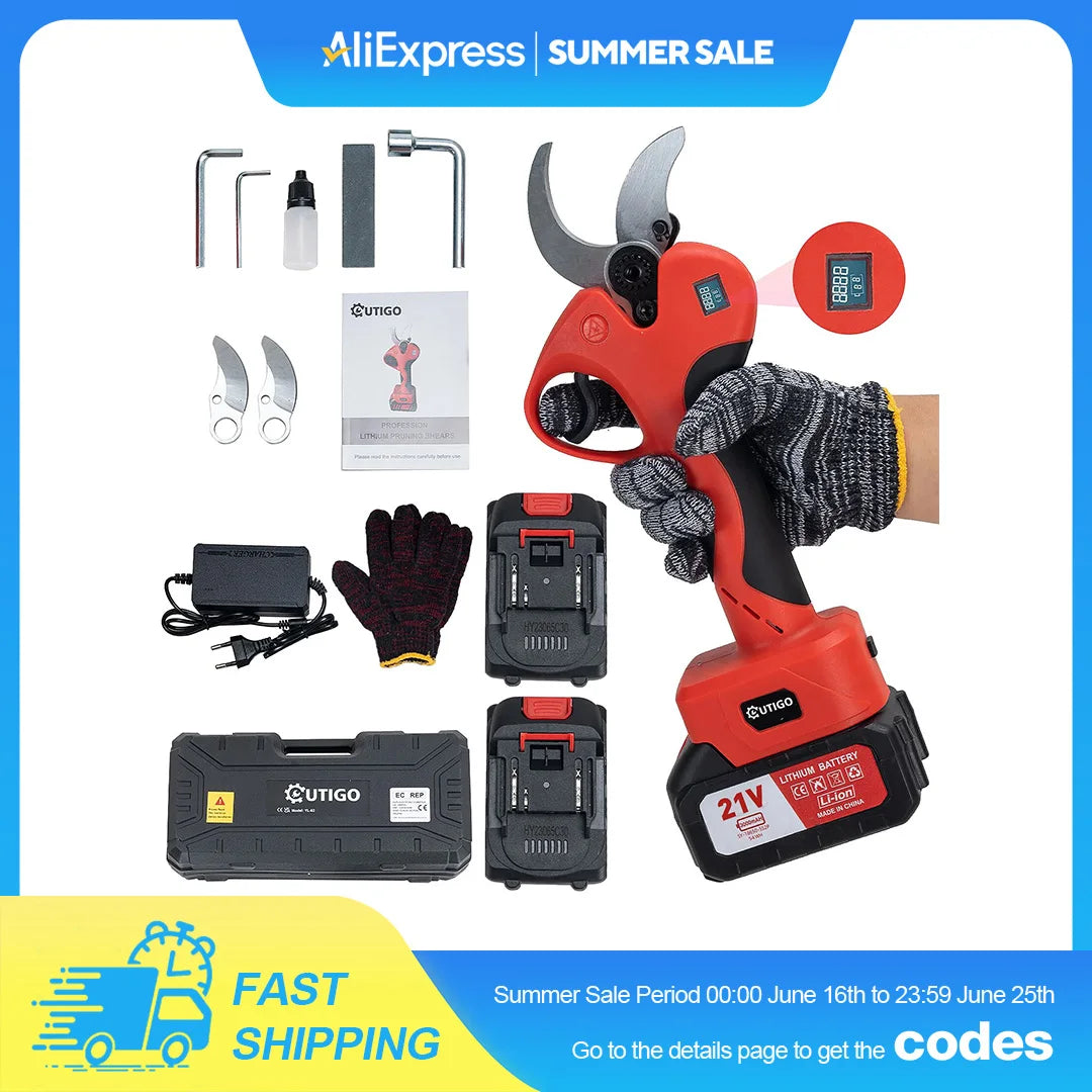 Foarfece electrice de grădinărit OUTIGO - 40 mm cu afișaj 2 baterii de 3,0 Ah pentru pomi fructiferi și podgorii din oțel carbon