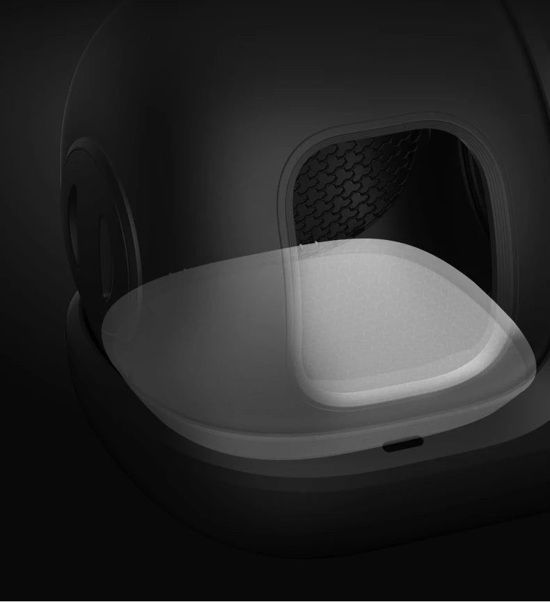 - Zona plată de intrare și ieșire asigură că și pisicile mai în vârstă sau cu mobilitate redusă pot folosi litiera fără probleme.