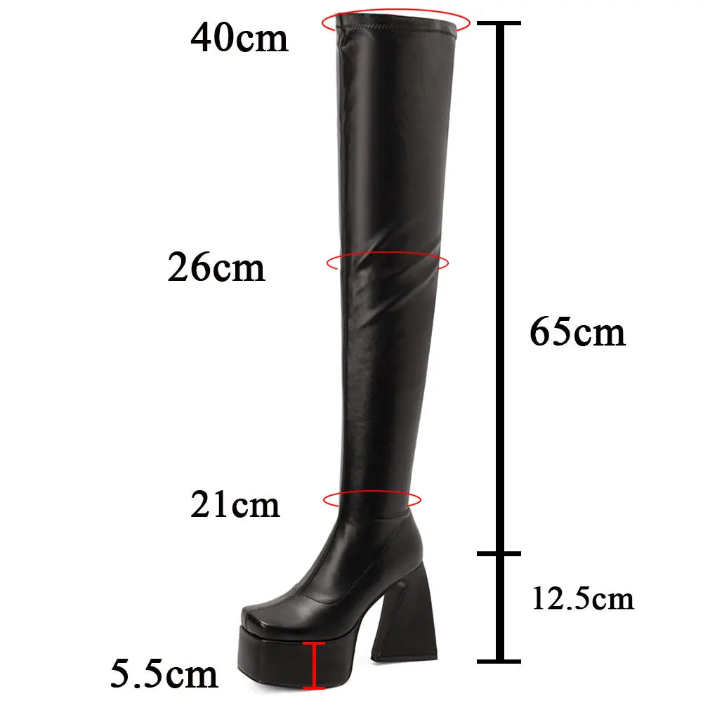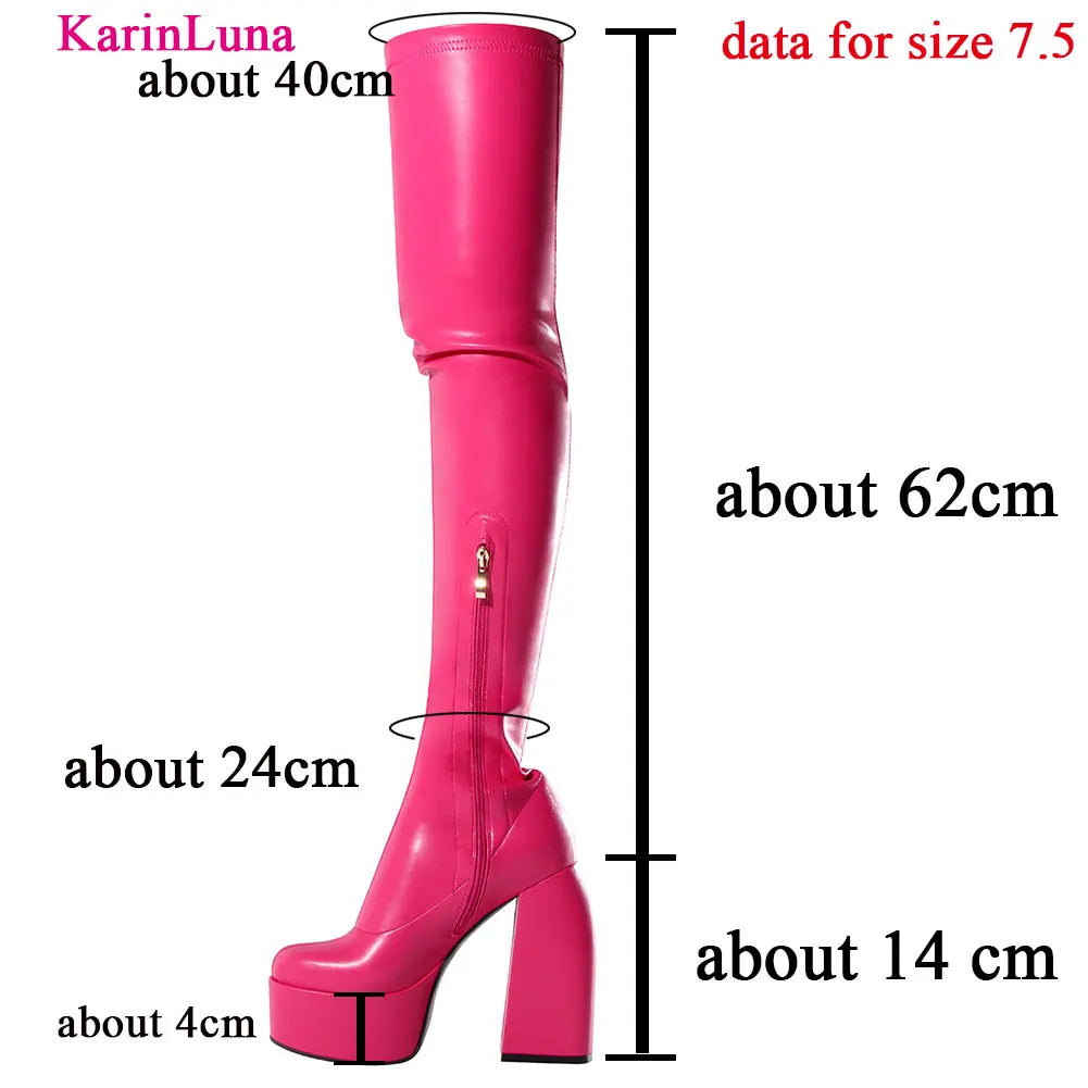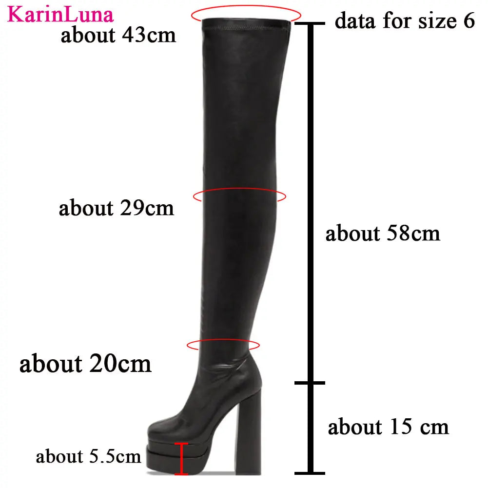 Ghete peste genunchi KarinLuna cu toc cu platformă - lungimea tijei deasupra genunchiului, înălțimea tocului 8 cm, mărime standard