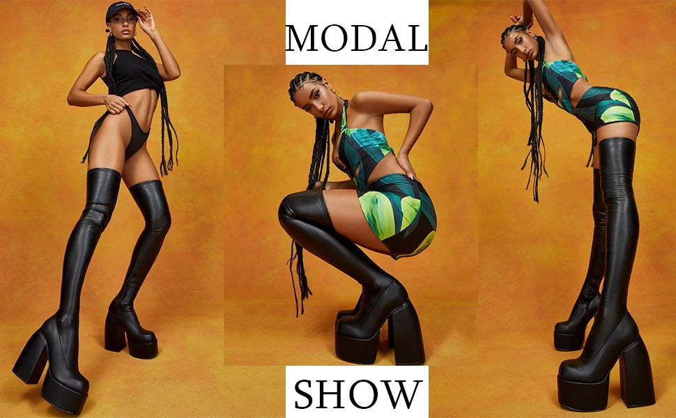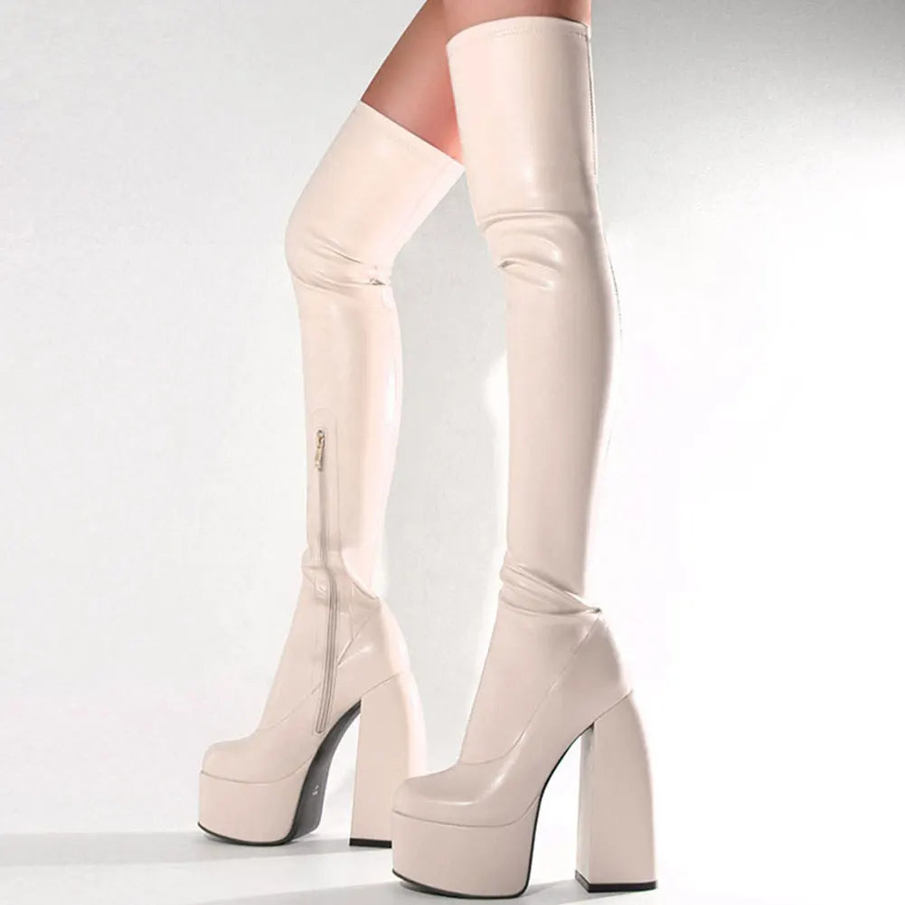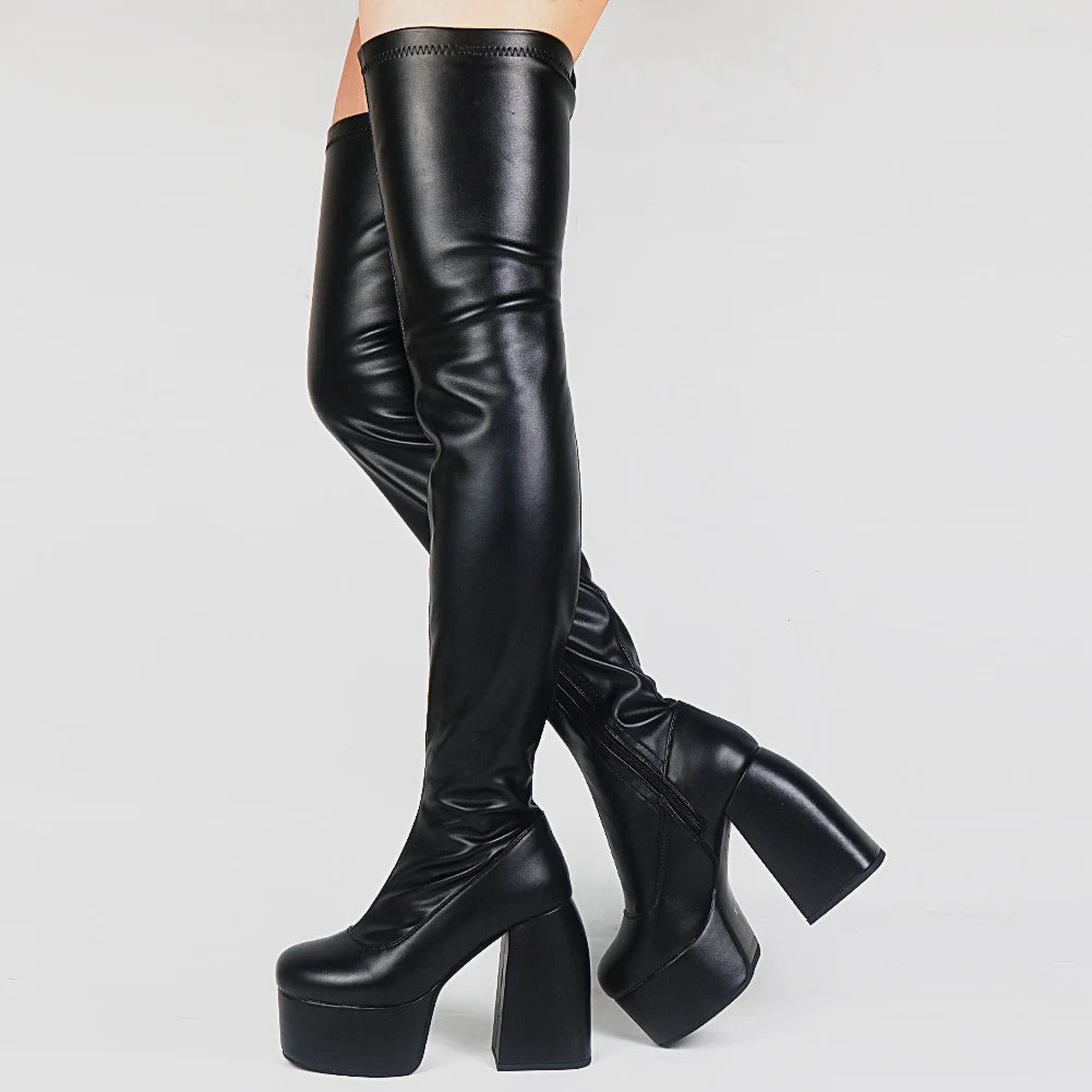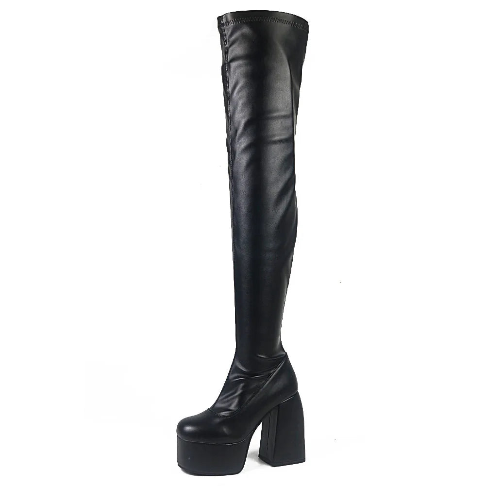 Ghete peste genunchi KarinLuna cu toc cu platformă - lungimea tijei deasupra genunchiului, înălțimea tocului 8 cm, mărime standard