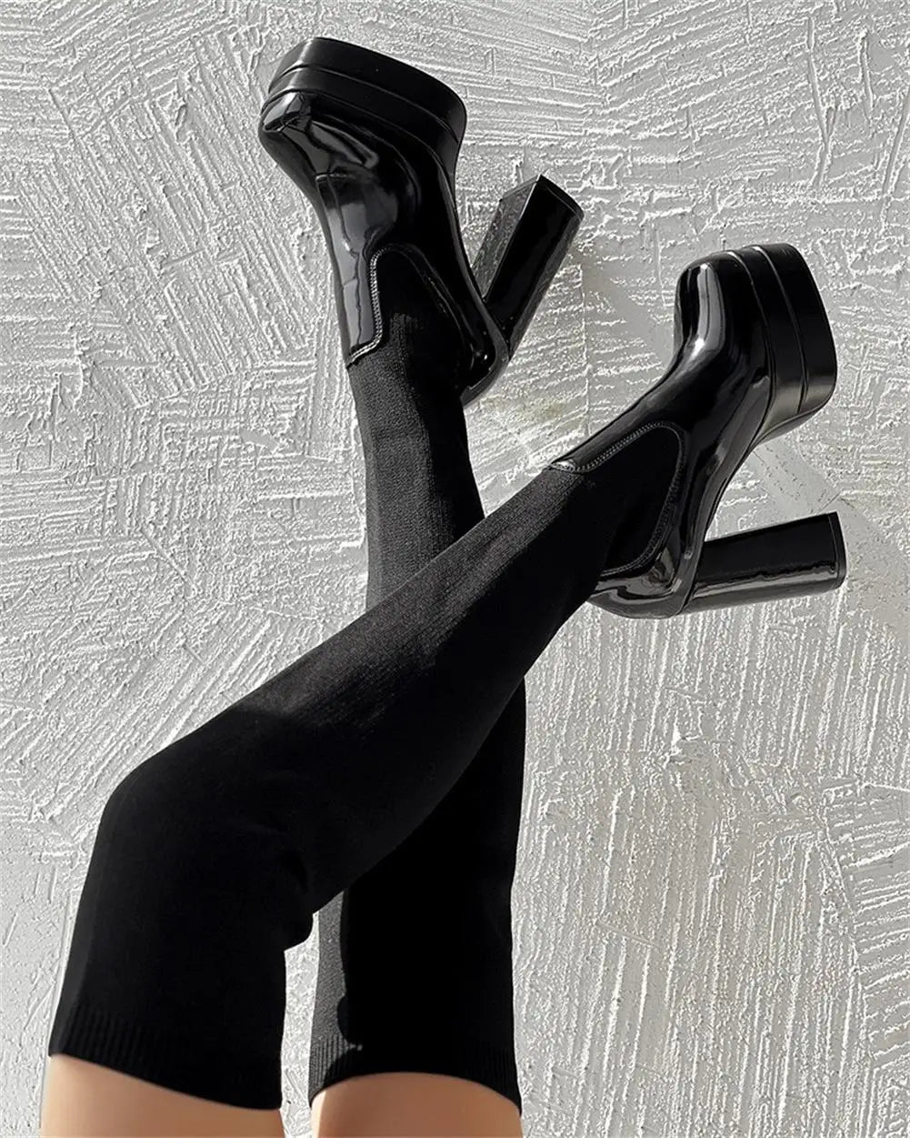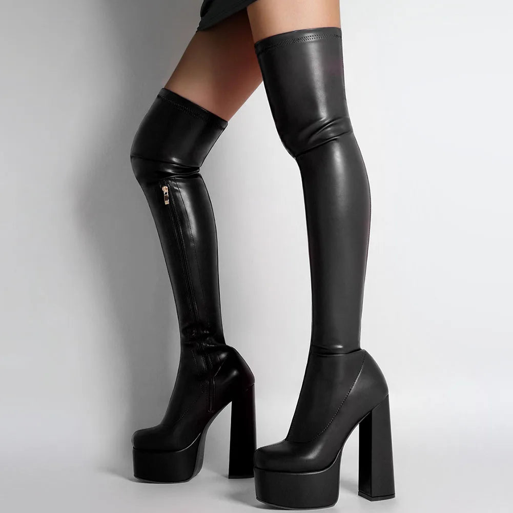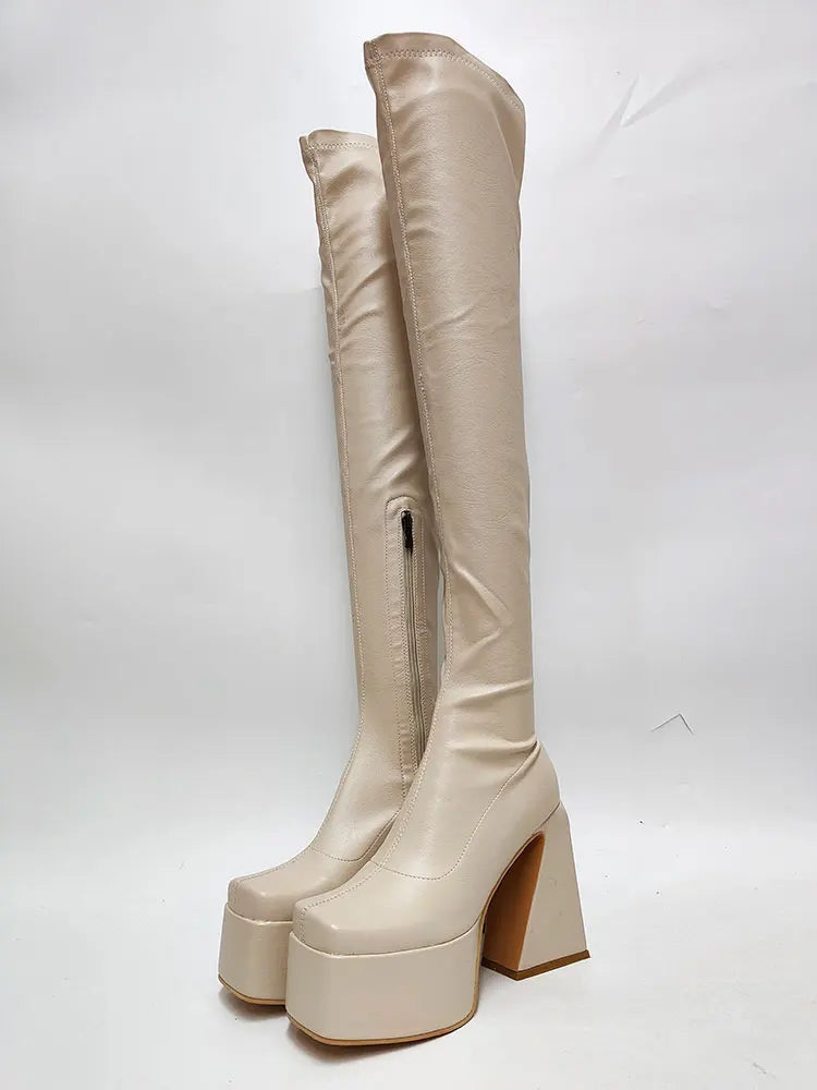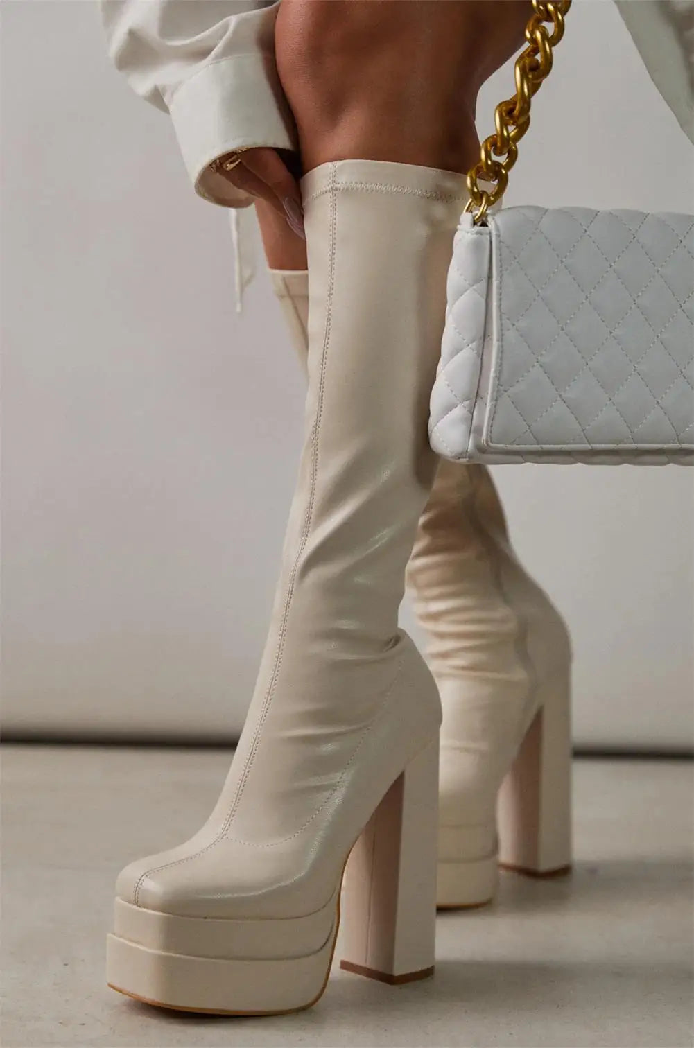 Ghete KarinLuna cu toc platformă și talpă peste genunchi – Înălțime elegantă și croială confortabilă pentru o apariție încrezătoare