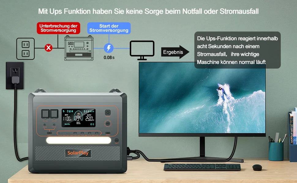 - Practic pentru locurile de muncă mobile: Alimentează laptopuri, monitoare și imprimante mici fără conexiune la rețea.