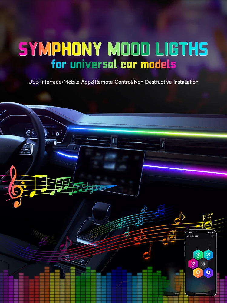 Transformă-ți vehiculul într-un mediu atmosferic, personalizabil, cu iluminare RGB dinamică care combină perfect muzica, culoarea și controlul facil.
