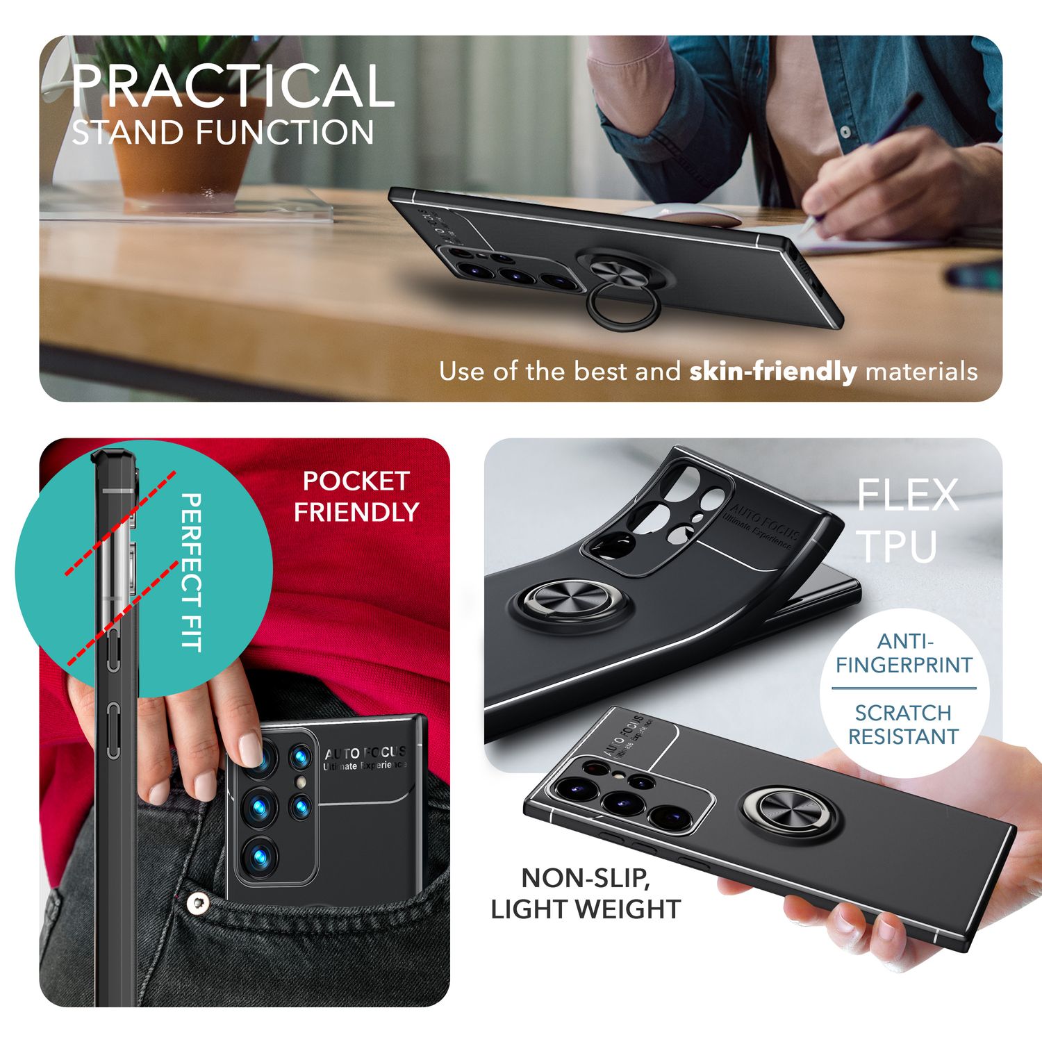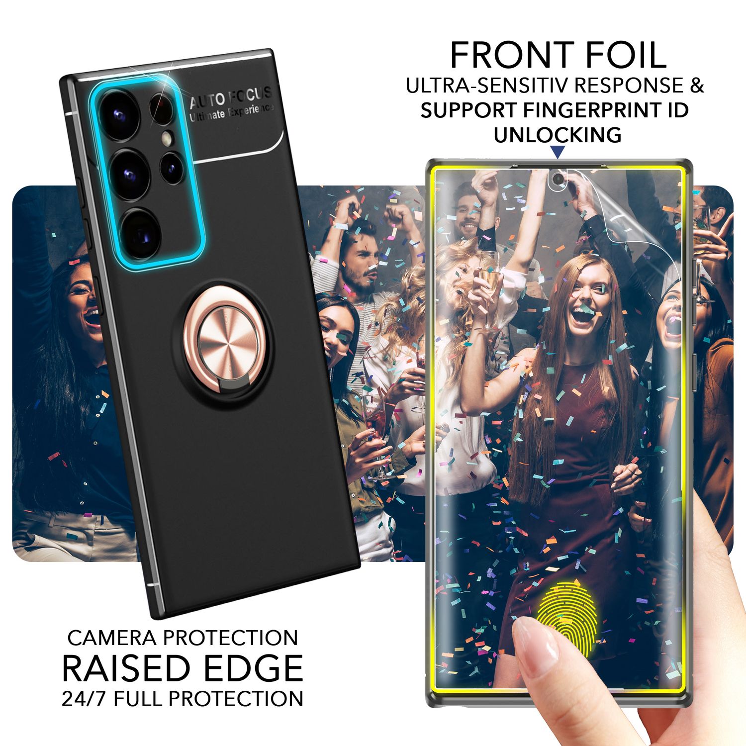Husă NALIA Berlin Grip360 cu inel de susținere la 360 de grade - Compatibilă cu Galaxy S23 Ultra, 2x Protecții de Ecran, Material Silicon