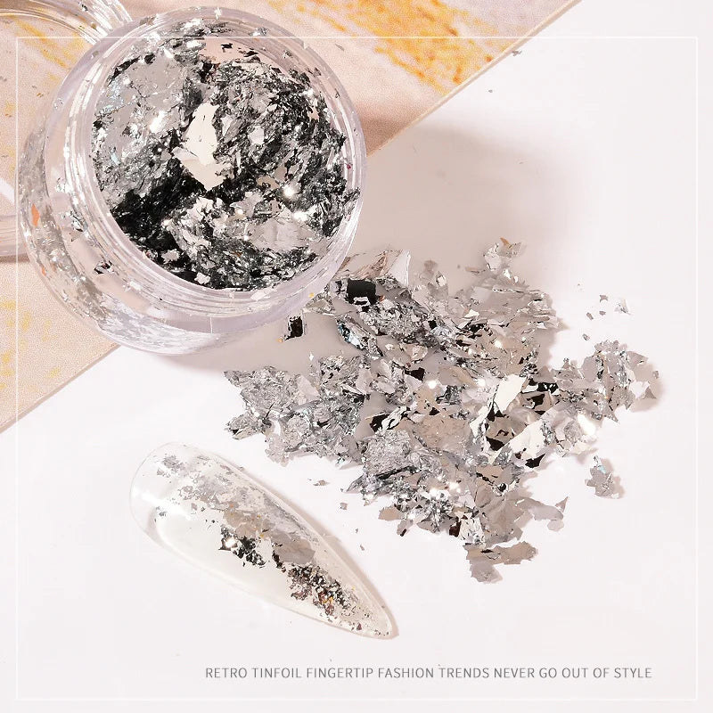 Oferă-le unghiilor tale fără efort o strălucire individuală și efecte creative cu aceste fragmente neregulate de folie – ideale pentru gel UV, ojă și modele nail art.