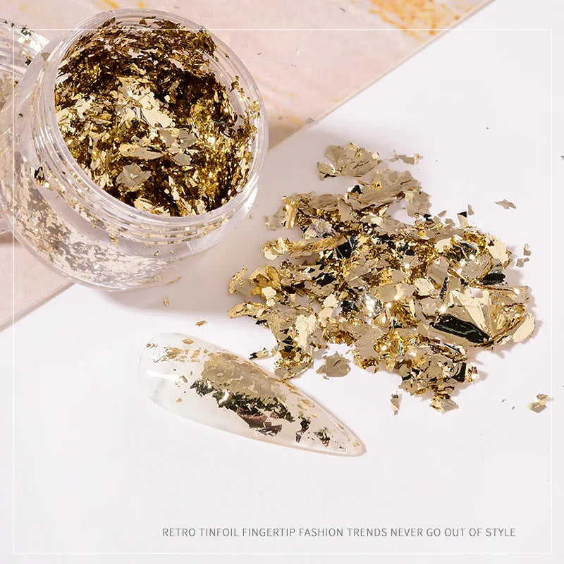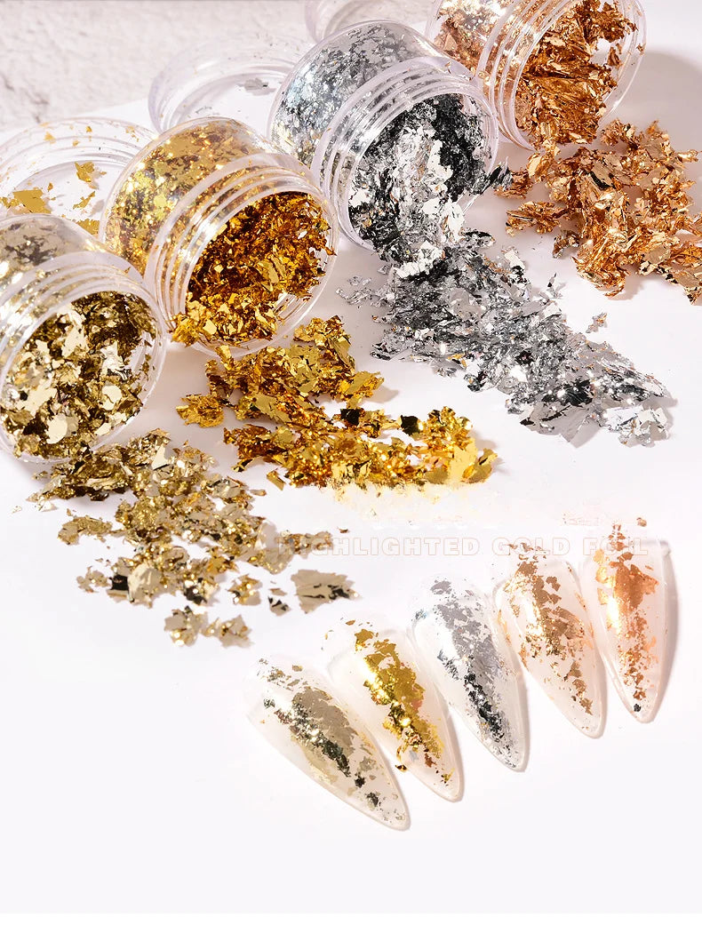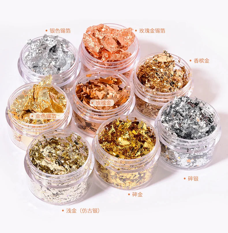 Fragmente de hârtie neregulată din folie de aur roz argintiu, unghii artă, paiete, autocolant, sclipici, manichiură DIY, gel UV, poloneză, instrumente de decorare a unghiilor