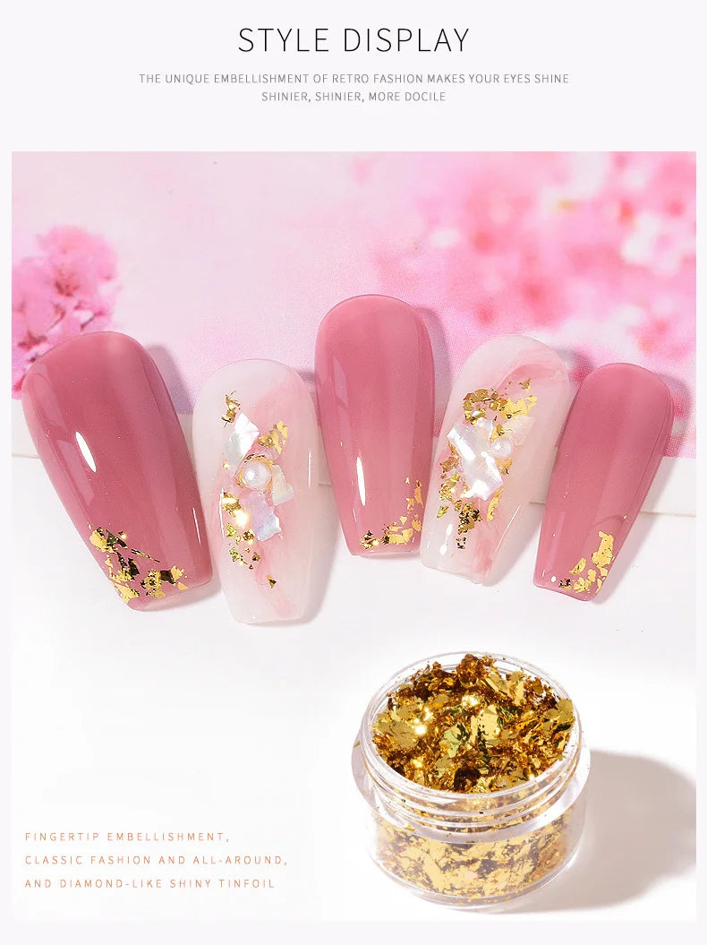 Autocolante cu paiete, fragmente de hârtie neregulată, auriu-roz-argintiu, pentru unghii – Accente strălucitoare pentru manichiură DIY profesională