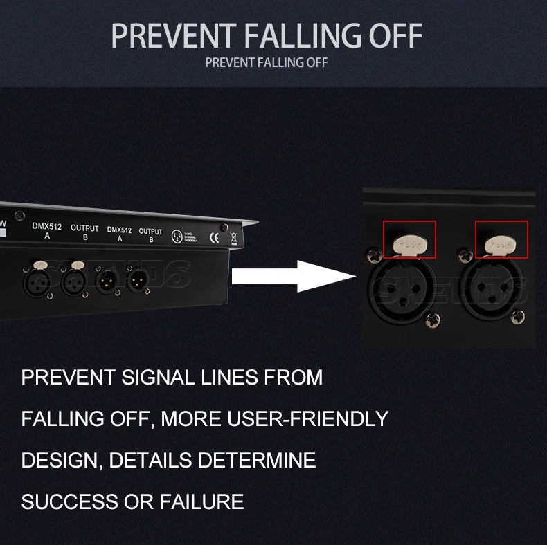- Conexiuni DMX: Mufe de ieșire DMX standard pentru conectarea luminilor par și a capetelor mobile