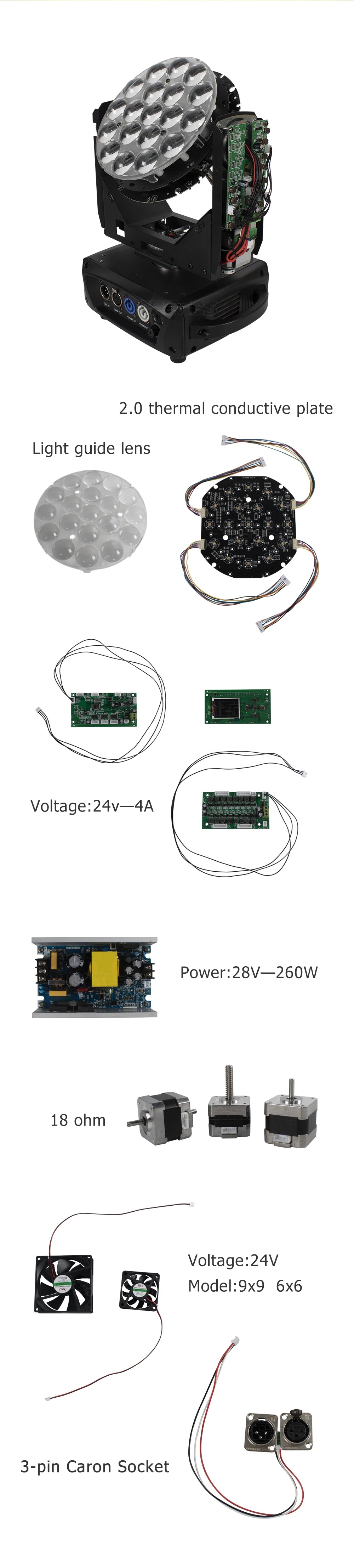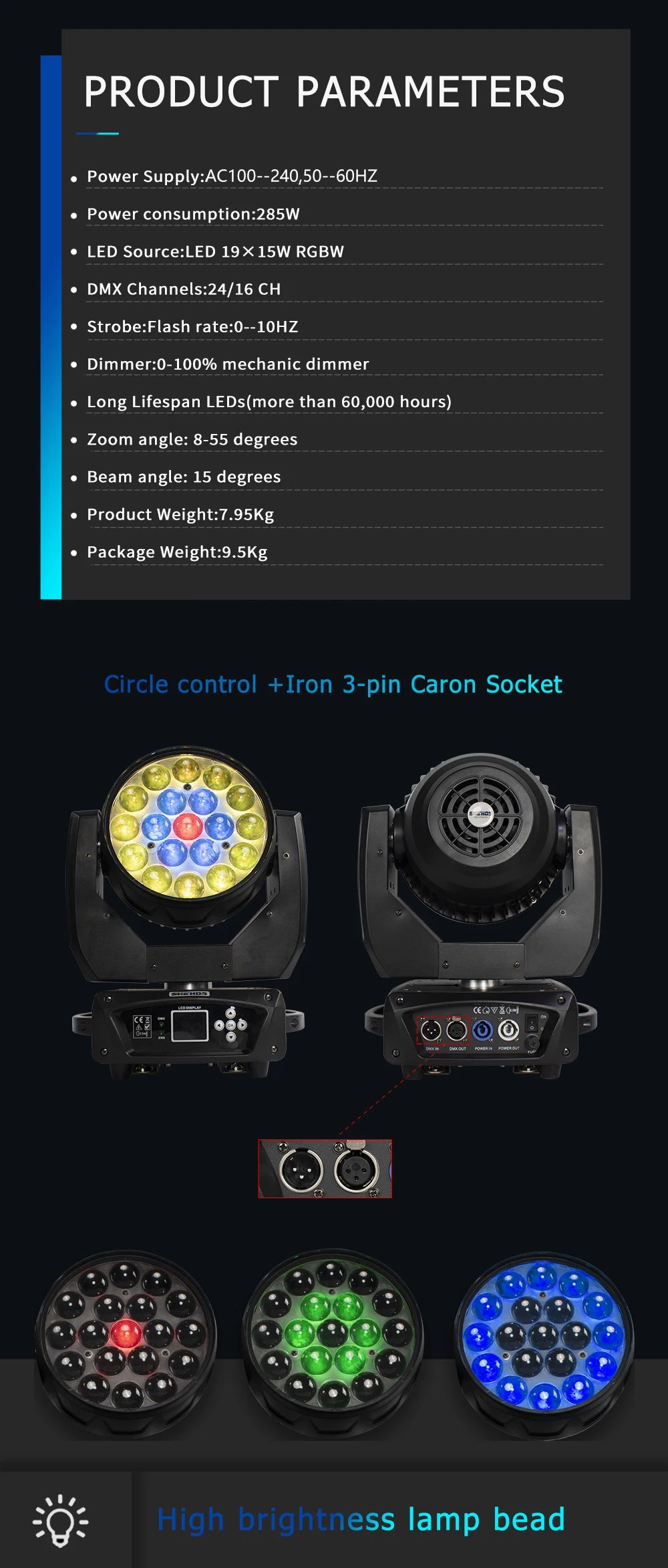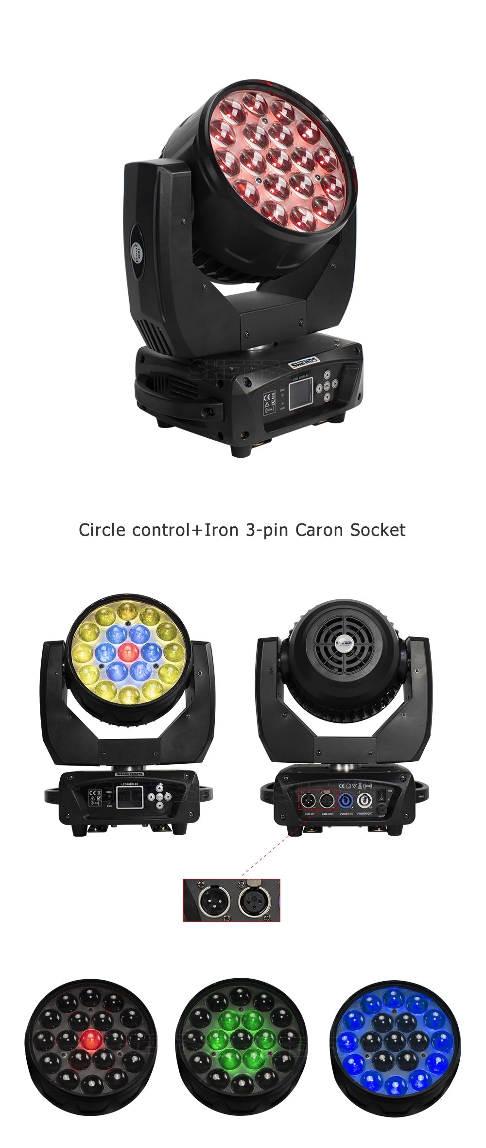 Cap mobil SHEHDS LED Zoom 19x15W RGBW – Fascicul puternic și efect de wash pentru spectacole impresionante