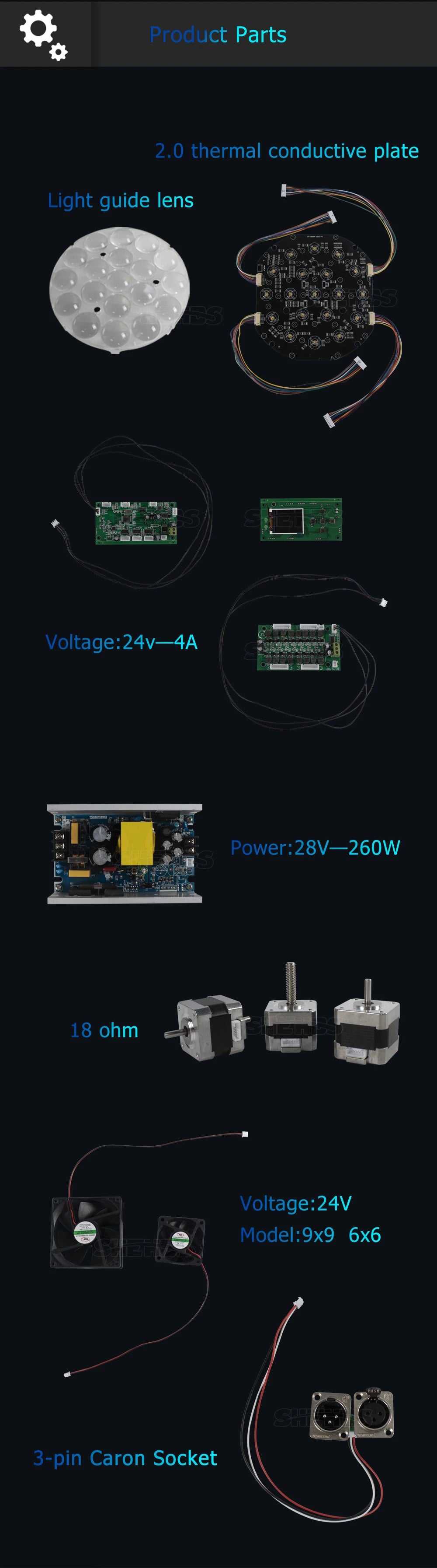- Meniu și afișaj simple: operare intuitivă la fața locului pentru reglarea rapidă a efectelor, rotirii panoramice/înclinării și a vitezei.
