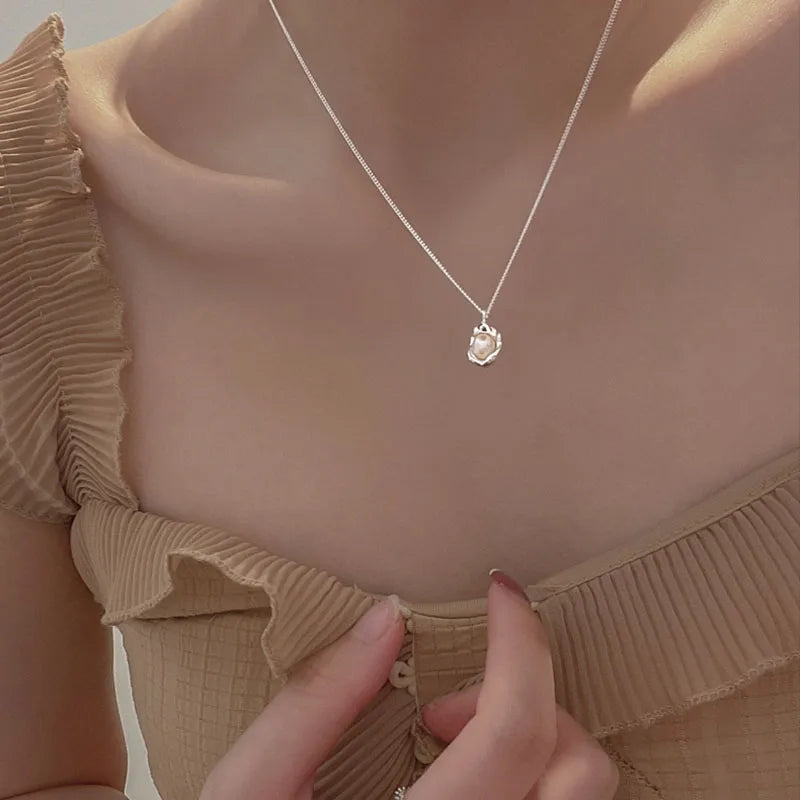 Colier geometric cu perle de culoare argintie, design simplu pentru femei, nișă, vânt rece, lumină, colier de claviculă de lux, en-gros