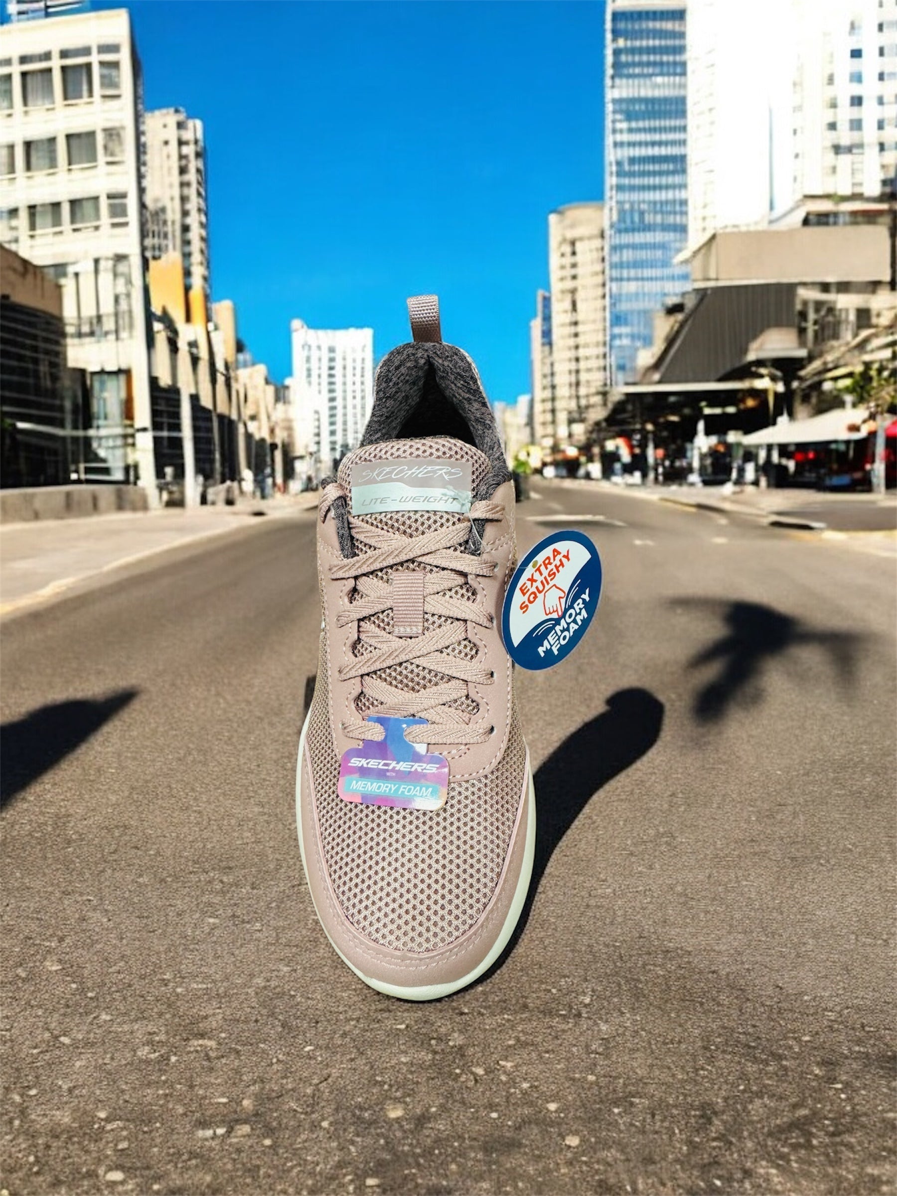 Die Sneaker von Skechers sind super komfortabel und begeistern auch optisch auf ganzer Linie. Das hochwertige Obermaterial aus Textil und Synthetik verleiht dem Damenschuh eine wunderbare Optik, während die Innenausstattung und die Decksohle – beide ebenfalls aus Textil – Den Fuß sanft umschließen. Mit der Innensohle aus Skechers Memory Foam wird dem Fuß eine passgenaue Bettung ermöglicht. So sind laufintensive Stunden kein Problem mehr. Auch an langen Tagen sorgt die flexible Schnürung für den nötigen Halt und ein tolles Lauferlebnis. Dieser Allrounder passt perfekt zum Casual-Outfit mit Jeans und Printshirt oder zum Business-Look mit Chino und modischer Bluse. Egal ob beim Einkaufen oder einem Ausflug mit der Familie: Mit diesem Sneaker von Skechers startet man , wenn man früh das Haus verlässt , gut gelaunt in den Tag.