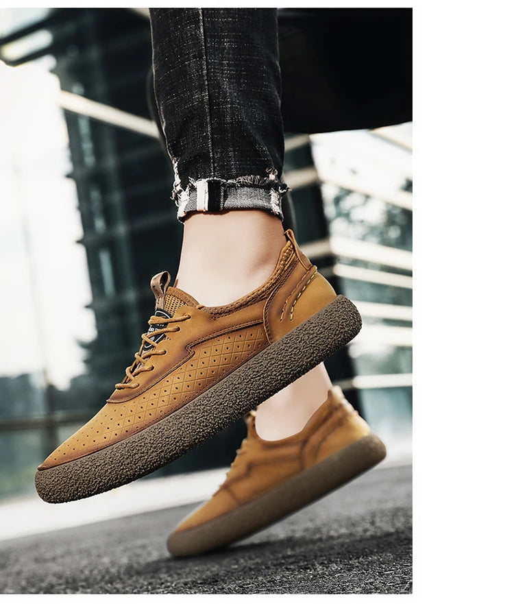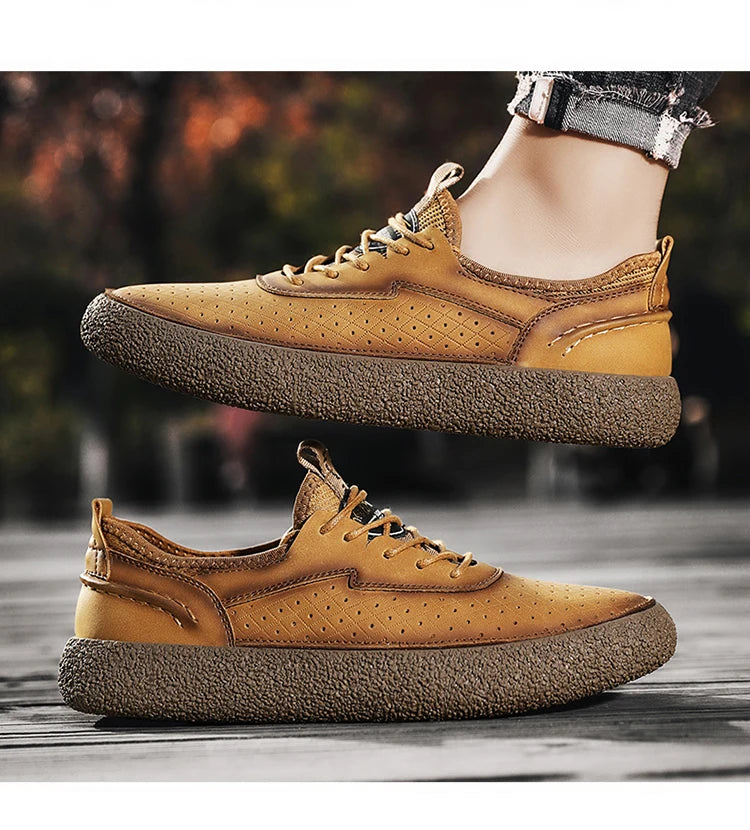 Teniși pentru bărbați, confortabili, clasici, casual, pentru exterior – Pantofi din piele antiderapantă și respirabili, pentru uz zilnic.