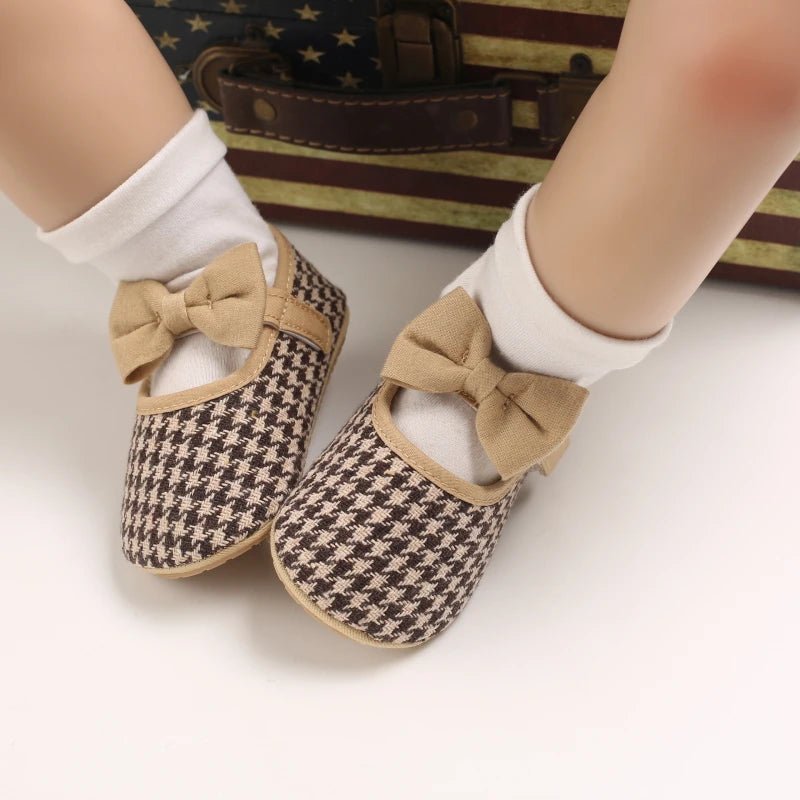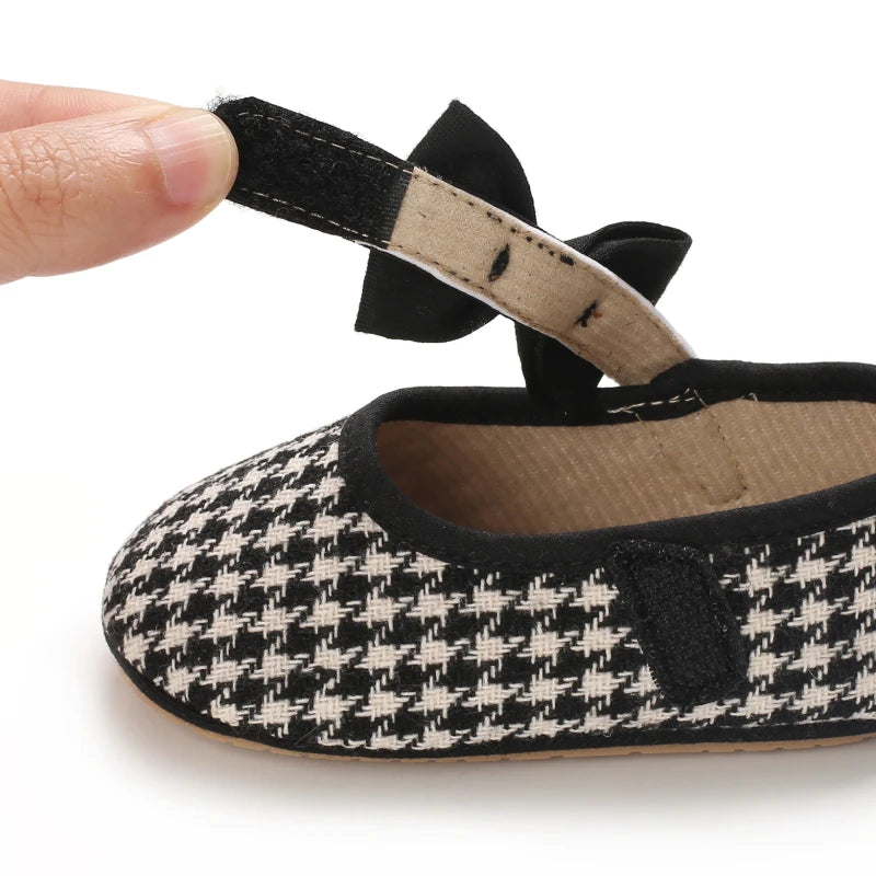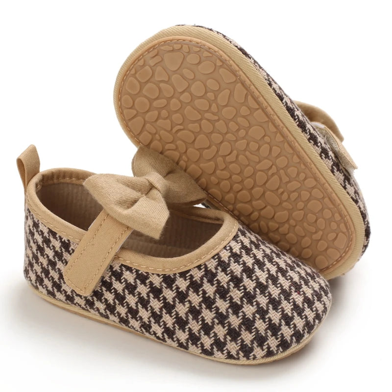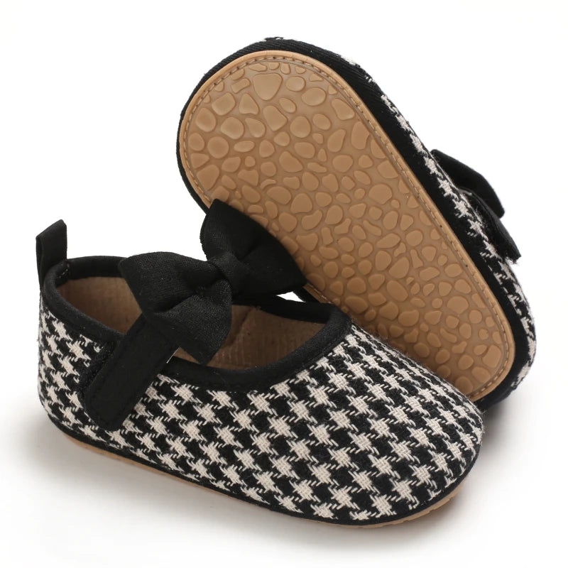 Aceste pantofi de prințesă au fost special concepuți pentru a face trecerea de la târâre la mers jucăușă și sigură. Modelul elegant cu zăbrele, combinat cu un detaliu subtil de parfum, creează un design atrăgător care se adresează atât părinților, cât și micuților purtători. Ideali pentru primăvară și toamnă, pantofii oferă un echilibru între protecție, libertate de mișcare și aspect elegant.
