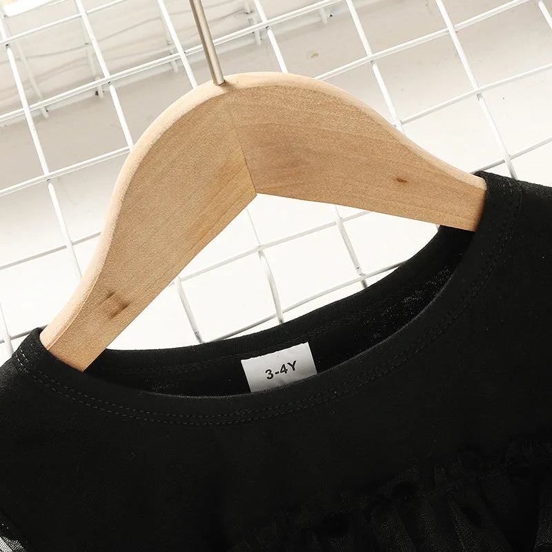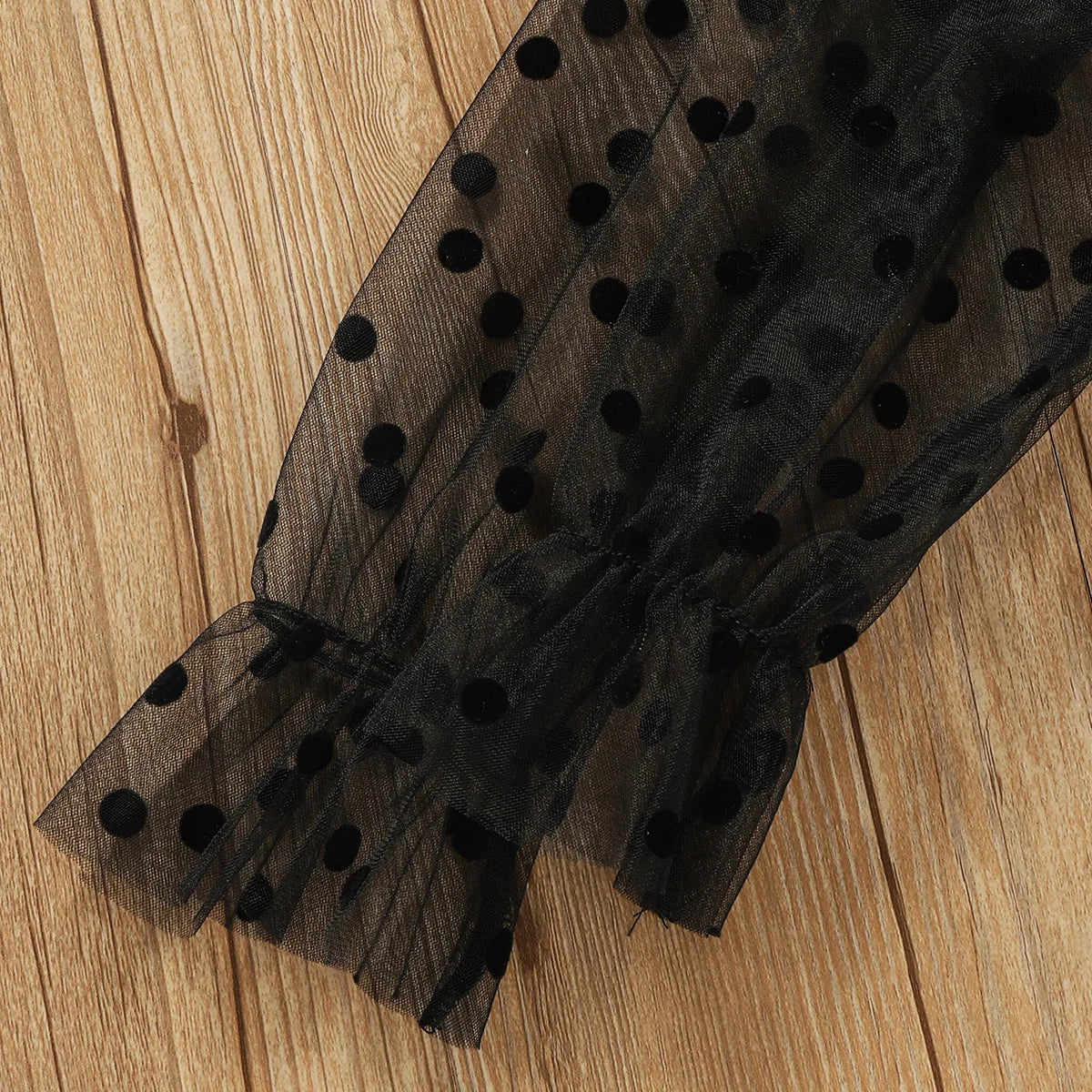 Rochie de primăvară și toamnă cu buline rotunde și dantelă, rochie de prințesă neagră solidă cu mânecă lungă pentru fete de mărime mică și mijlocie
