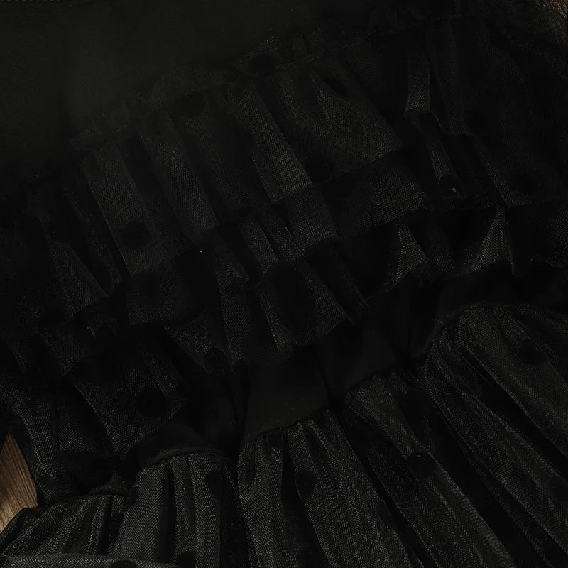 - Nume produs: Rochie de primăvară și toamnă cu buline rotunde și dantelă, rochie de prințesă neagră cu mânecă lungă pentru fete de mărime mică și mijlocie