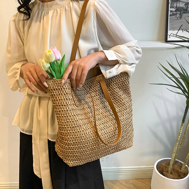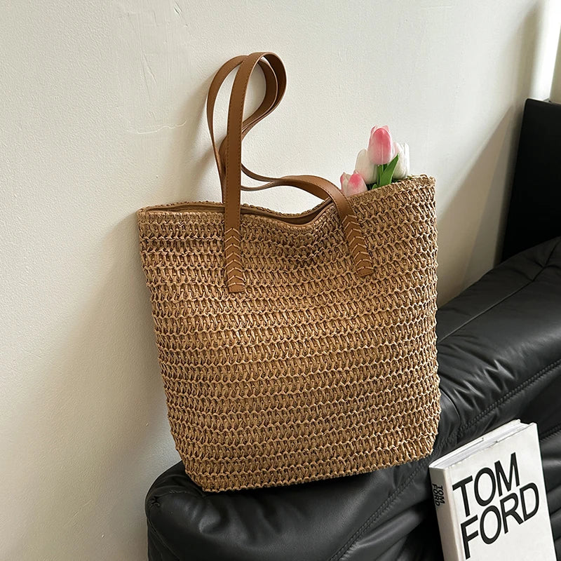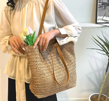 - 1 x Geantă tote de mare capacitate pentru plajă de vară (aspect țesut manual)