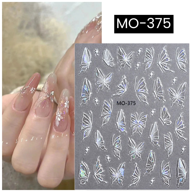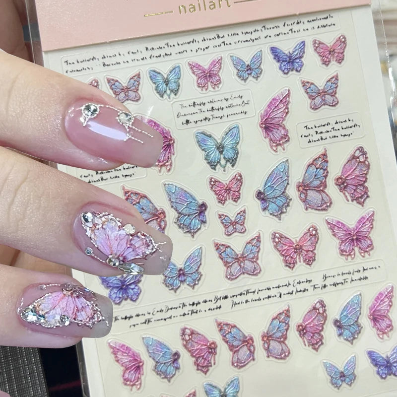 Autocolante 3D cu fluturi super strălucitoare – Nail art strălucitoare pentru manichiură elegantă