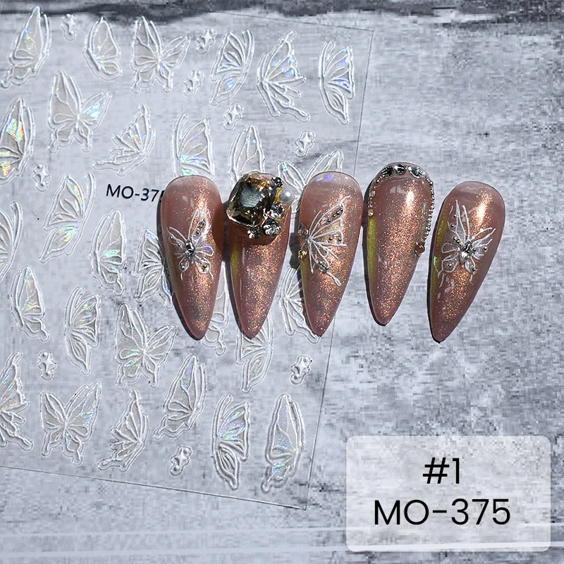 - 1 x Foaie de autocolante pentru unghii cu fluturi 3D super strălucitori (7,2 cm x 9,2 cm)