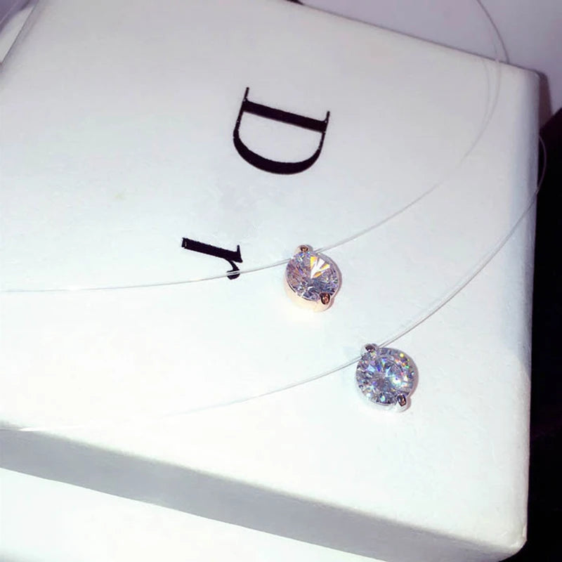 Colier transparent invizibil cu fir de pește, pandantiv super strălucitor cu zirconiu pentru femei, moda Coreea, coliere claviculă Femme Choker