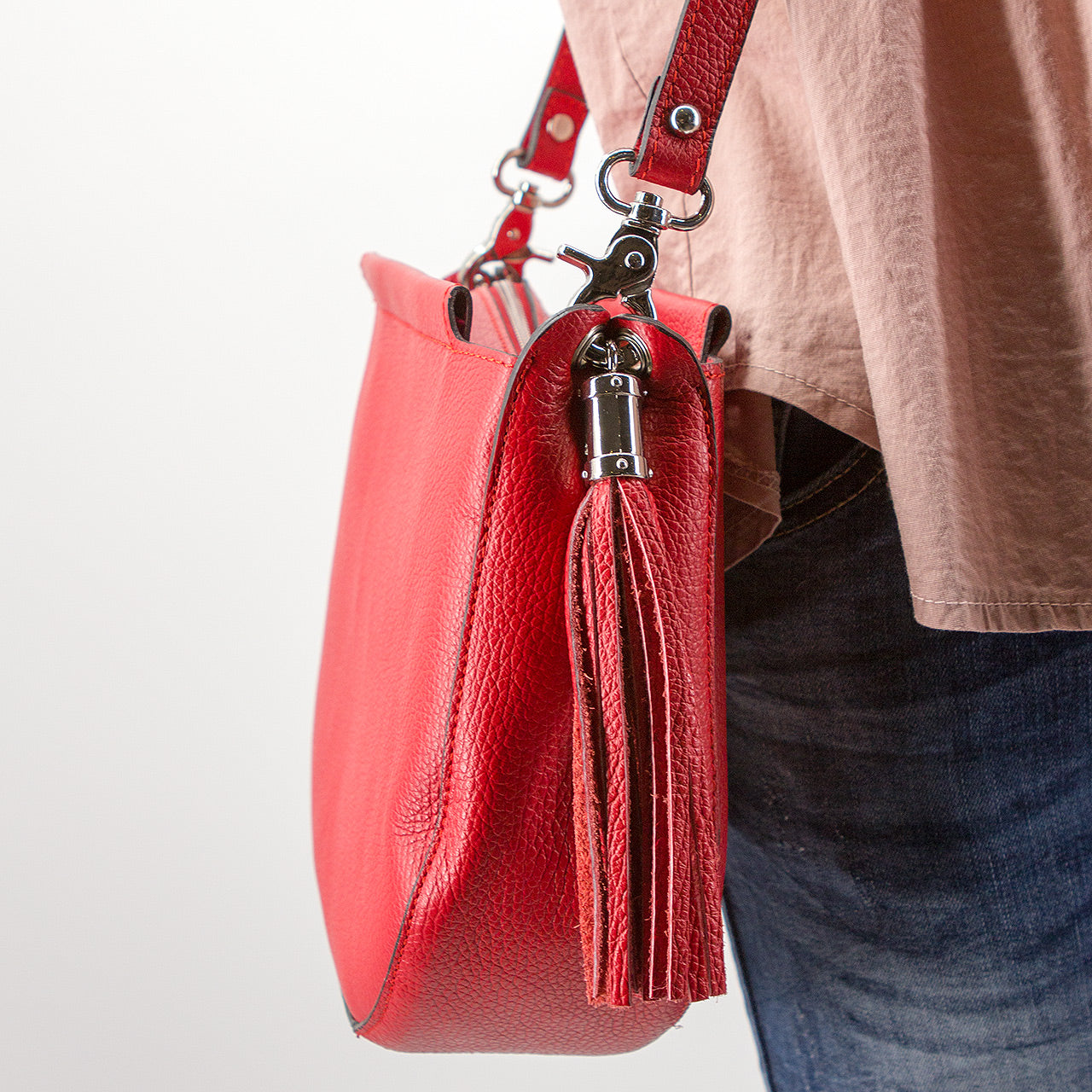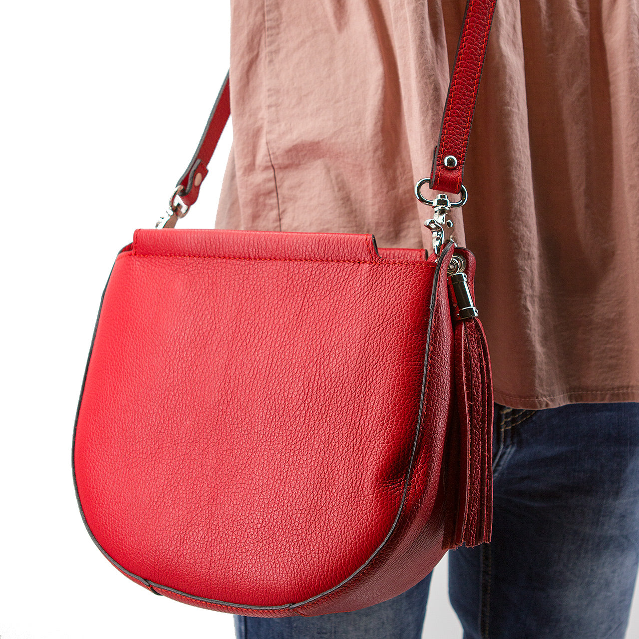 Umhängetasche in D Form mit Quaste Rot