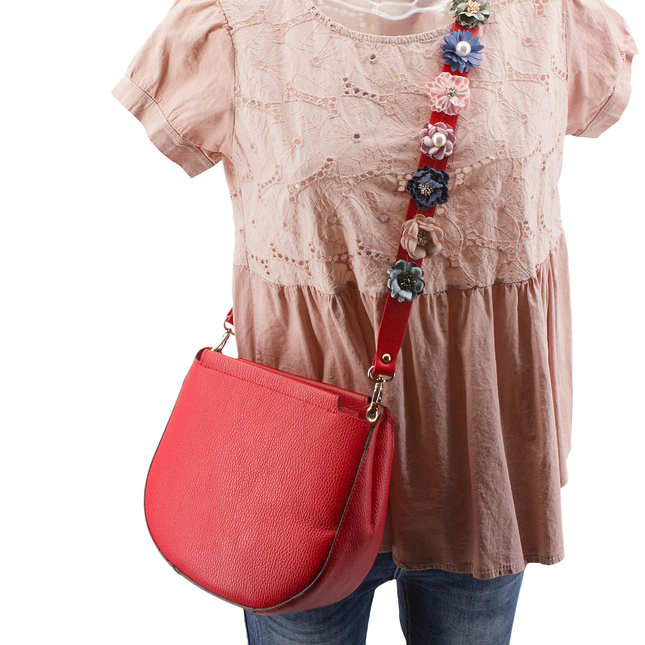 Modische Leder Tasche in D Form mit Quaste. Optional mit Blüten / Blumen Ledertragegurt - Siehe dazu die Bundle Angebote - Ein Großes Innenfach und eine seitliche Innentasche mit Reißverschluss, Tragegurt, Breite ca. 25 cm und Höhe ca. 23cm Tiefe ca. 9cm, Innenfutter 100% Polyester,