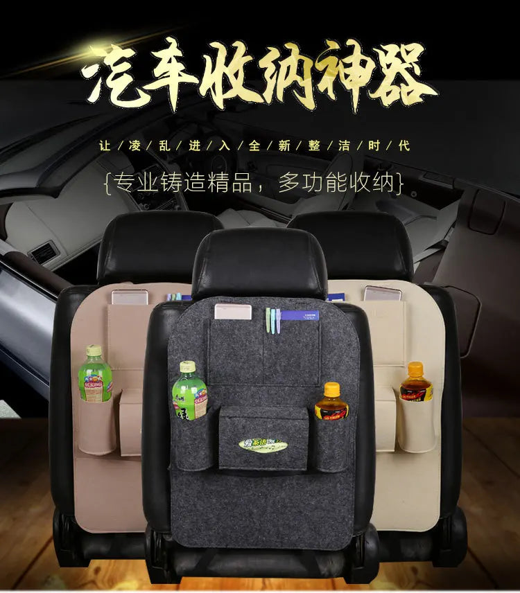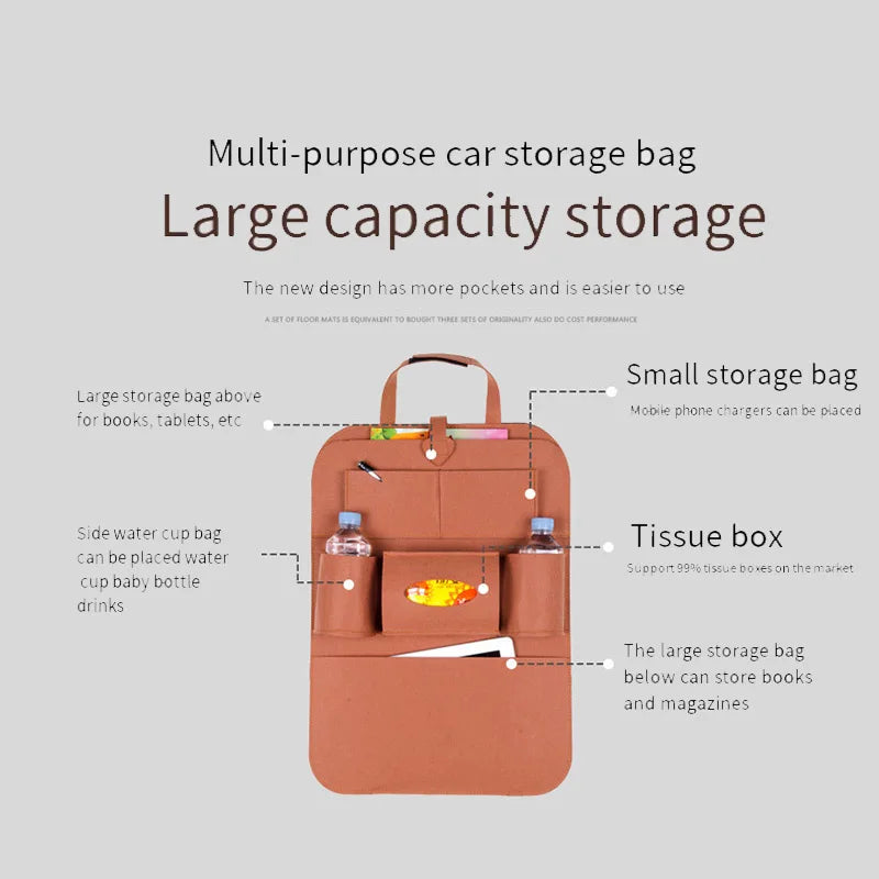 Geantă universală de depozitare pentru bancheta din spate a mașinii, organizator pentru portbagaj, geantă de depozitare elastică din fetru, 6 buzunare, organizator agățat pentru accesorii auto 40 * 56CM - Mai multă ordine și utilizare eficientă a spațiului din mașină