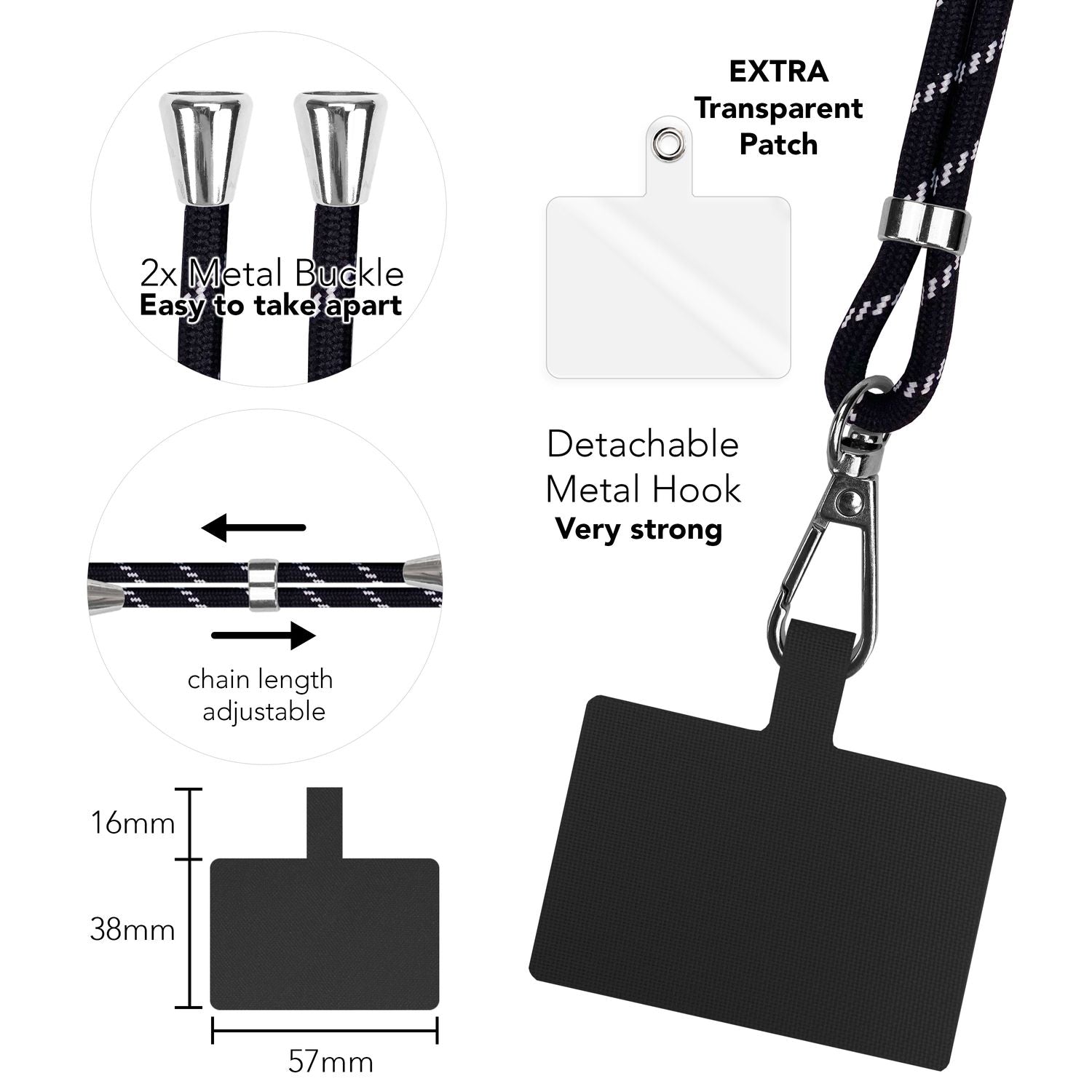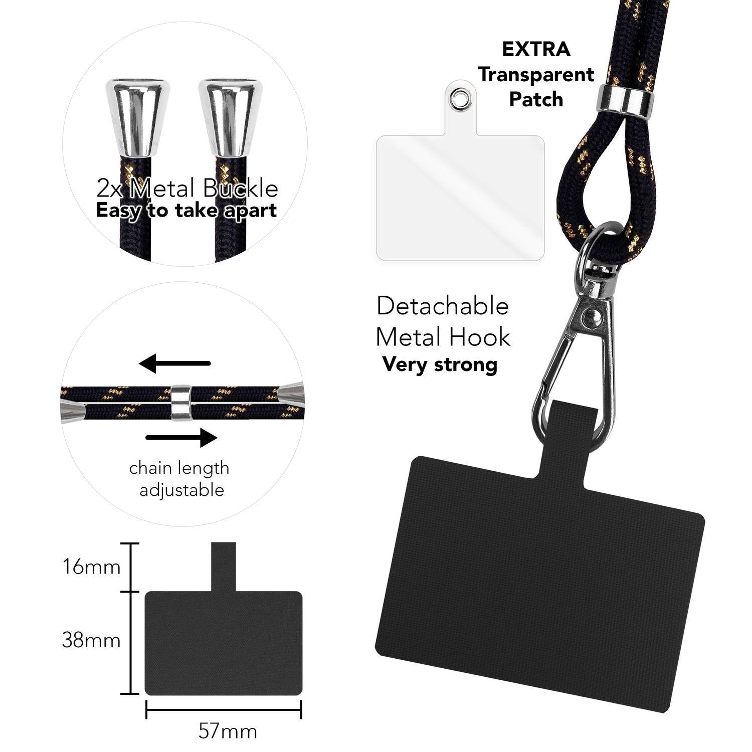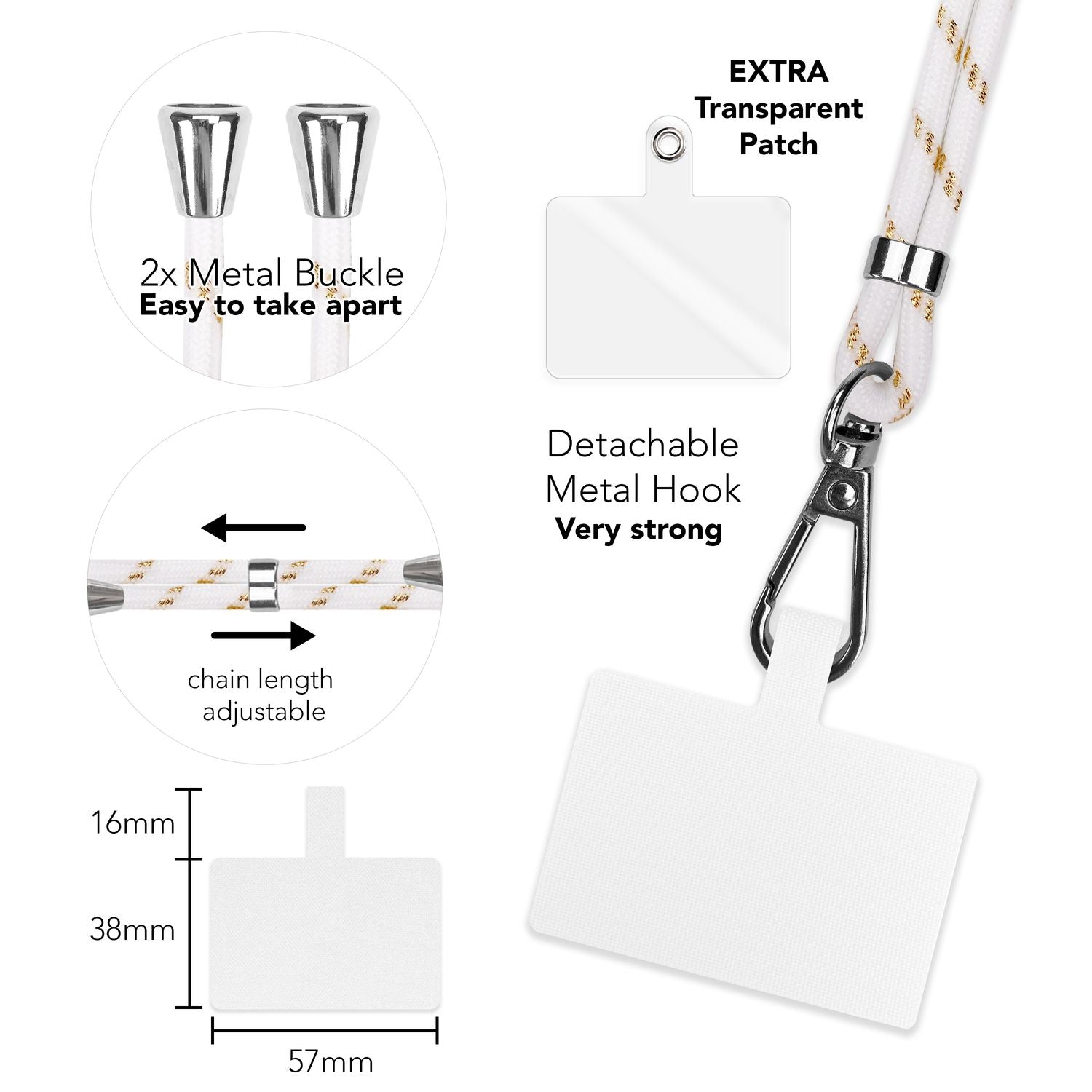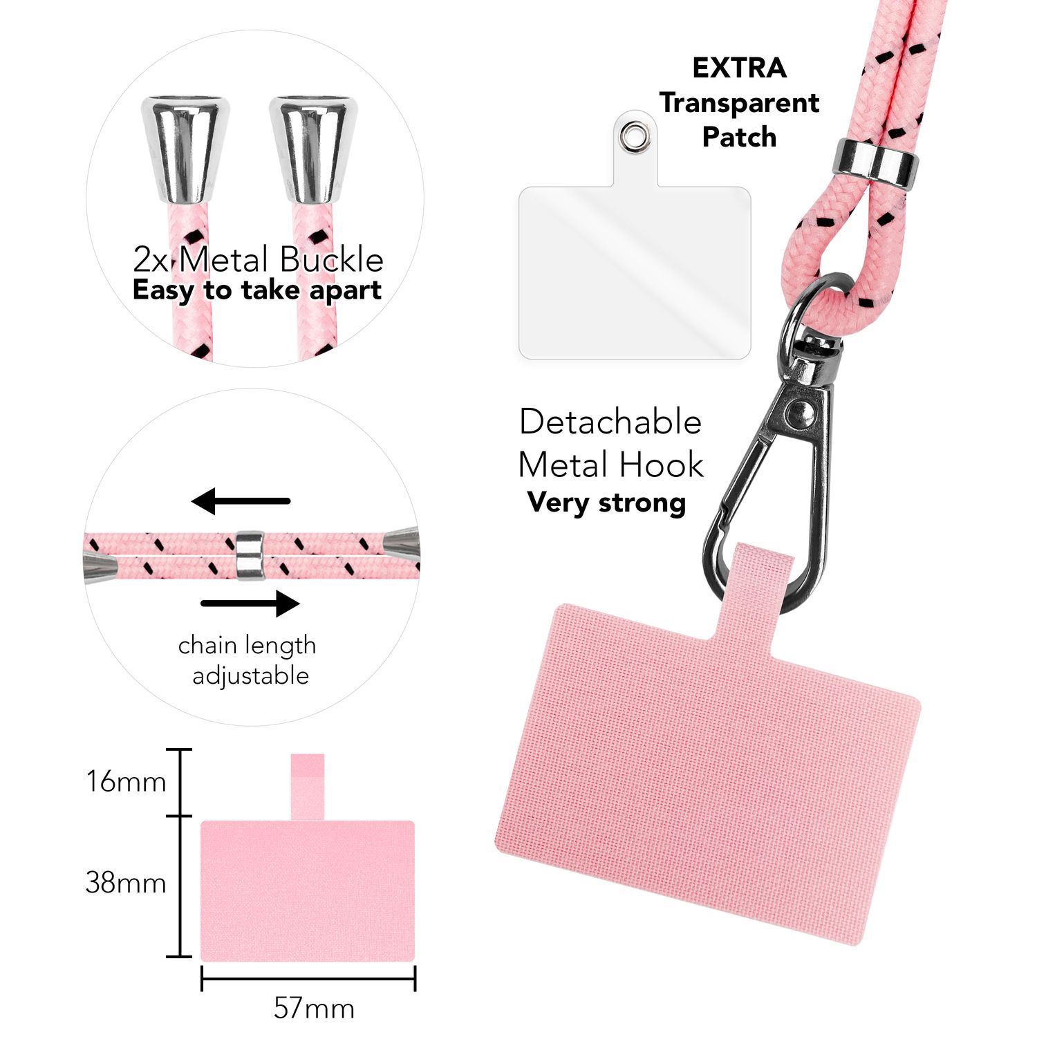 Lanț universal pentru telefon, pentru purtare în jurul gâtului, cu pernă și carabină pentru husa de smartphone