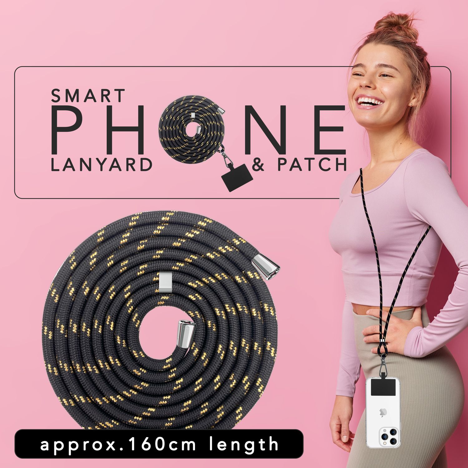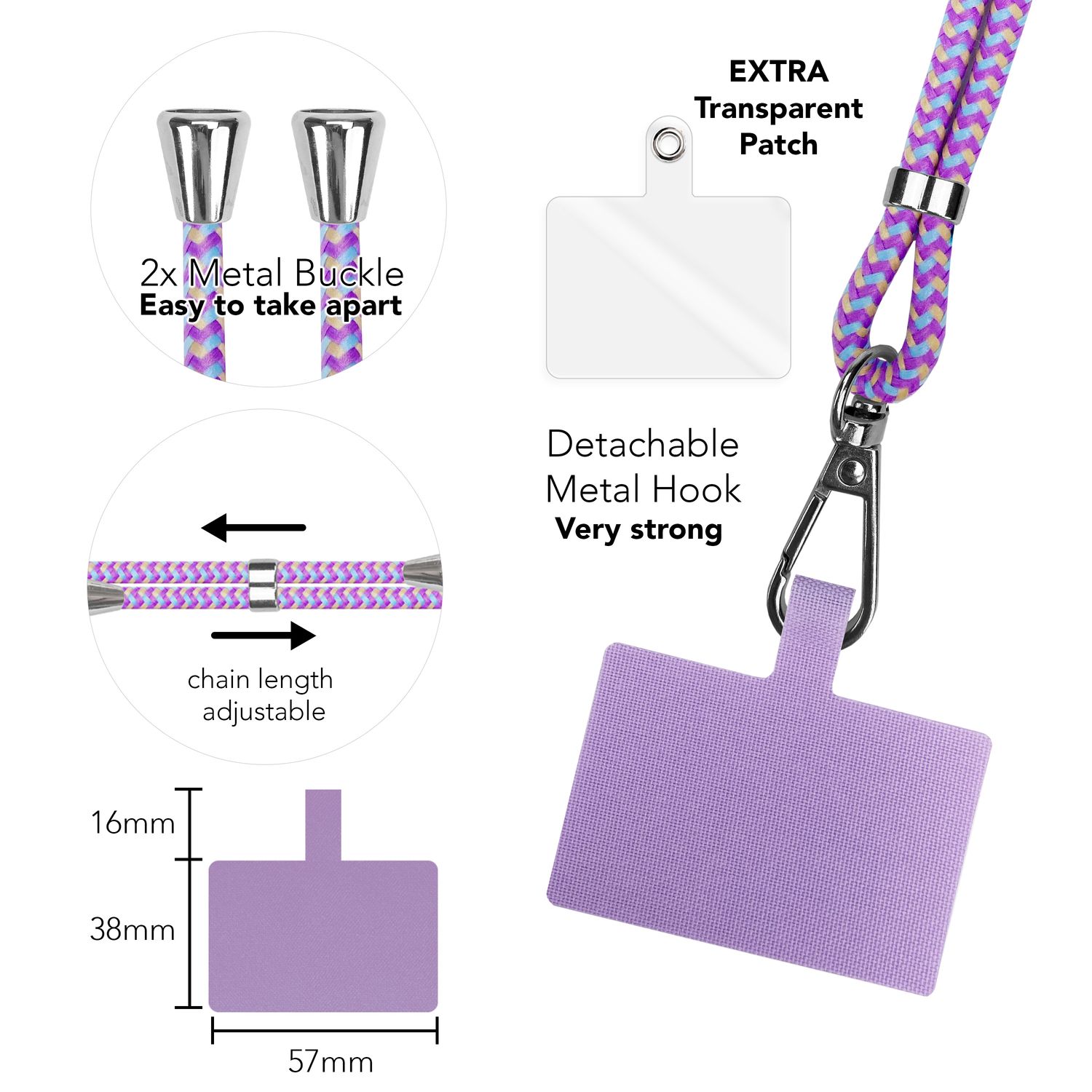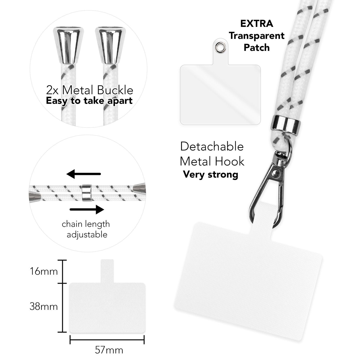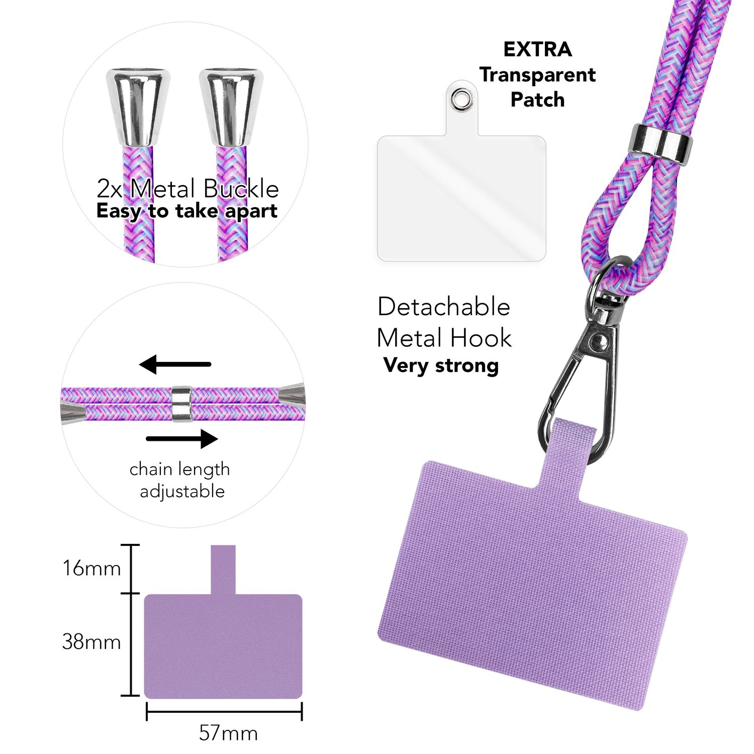Lanț universal pentru telefon, pentru purtare în jurul gâtului, cu pernă și carabină pentru husa de smartphone