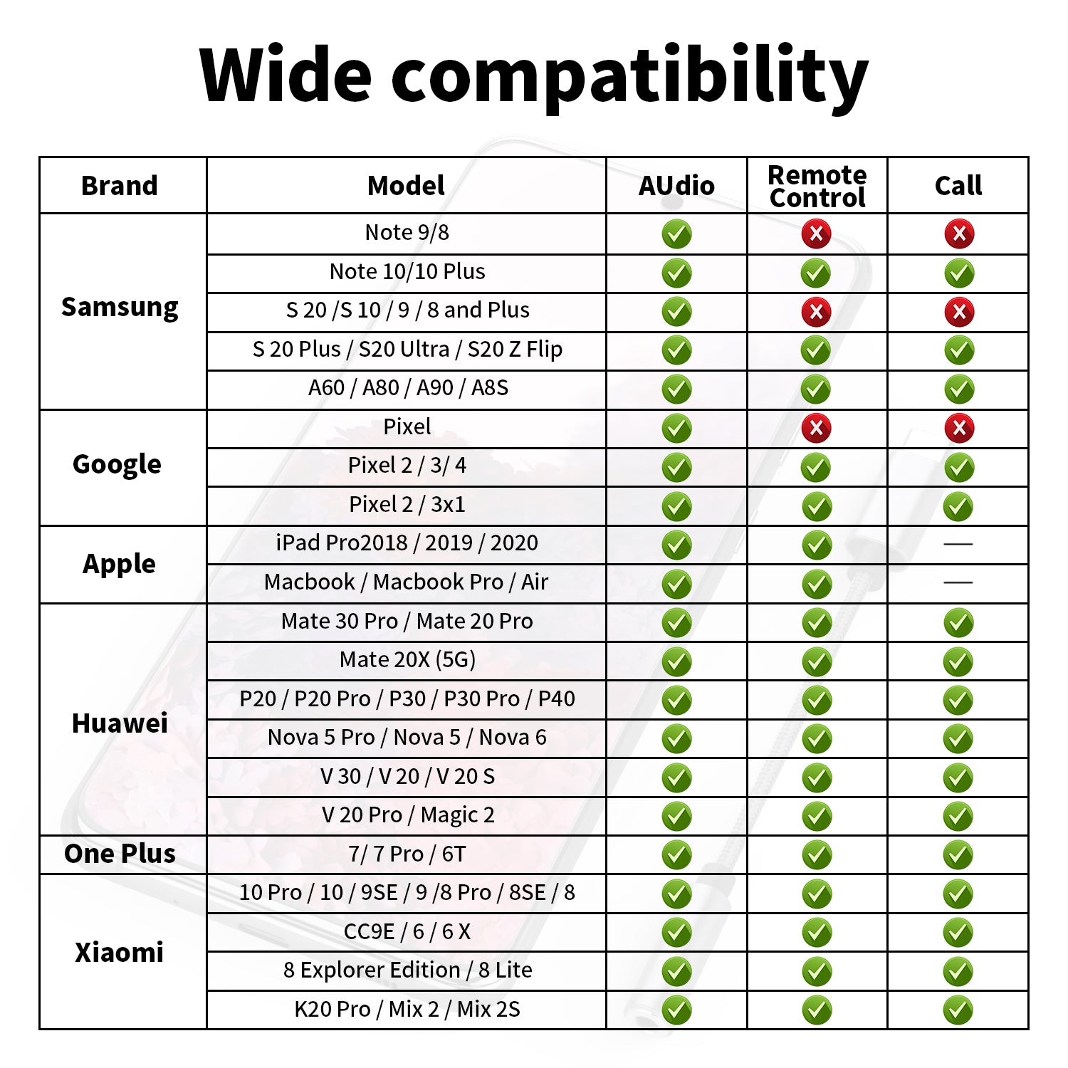 - Compatibilitate largă cu producători populari precum Google, Samsung, iPad, Huawei și Xiaomi, precum și multe alte modele.