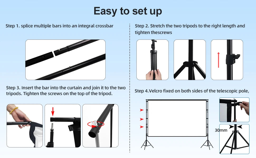 Experimentați proiecții clare ca cristalul și mobilitate ușoară: Ecranul portabil cu suport VEIDADZ combină calitatea profesională a imaginii cu flexibilitate maximă pentru home theater, prezentări și evenimente.