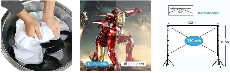 - Materialul superior din PVC anti-șifonare asigură o reflexie uniformă și o imagine curată și clară, fără distorsiuni.