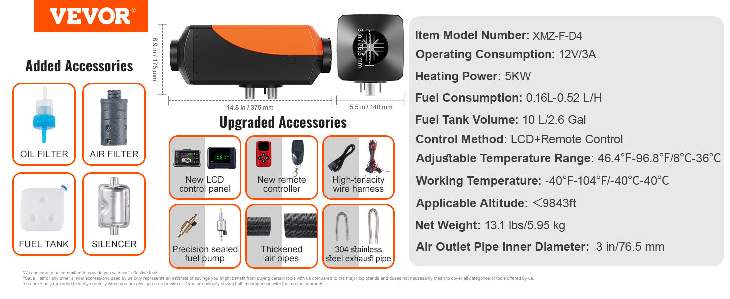 Încălzitor diesel 2025 - Încălzitor de aer VEVOR 12V 5/8KW - Încălzitor de parcare pentru rulote cu încălzire rapidă