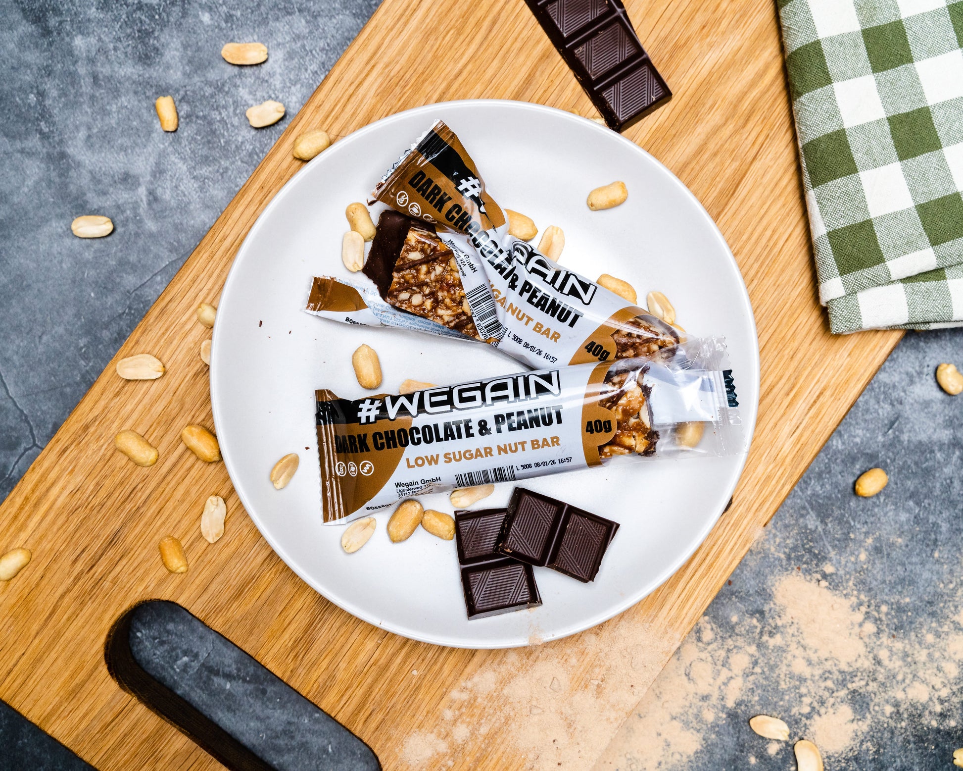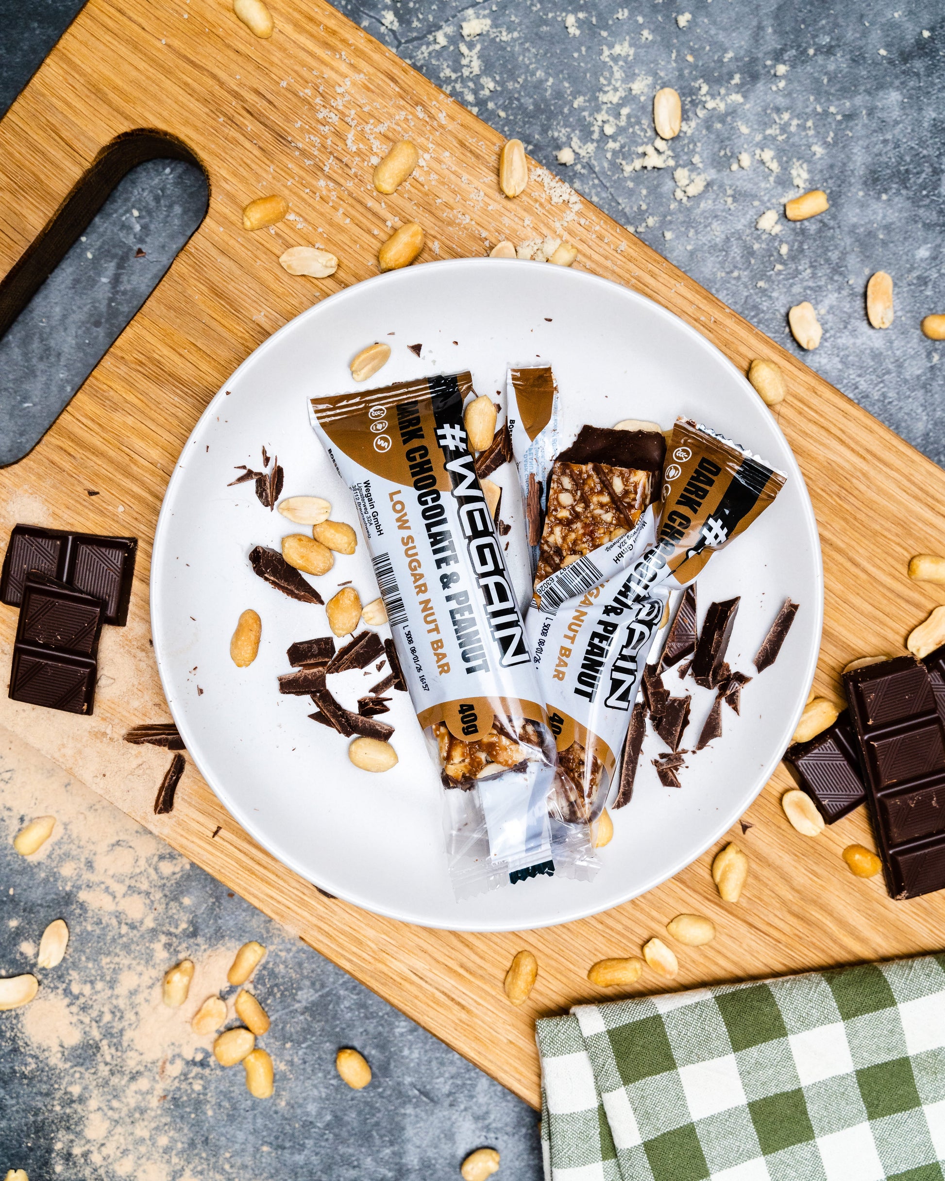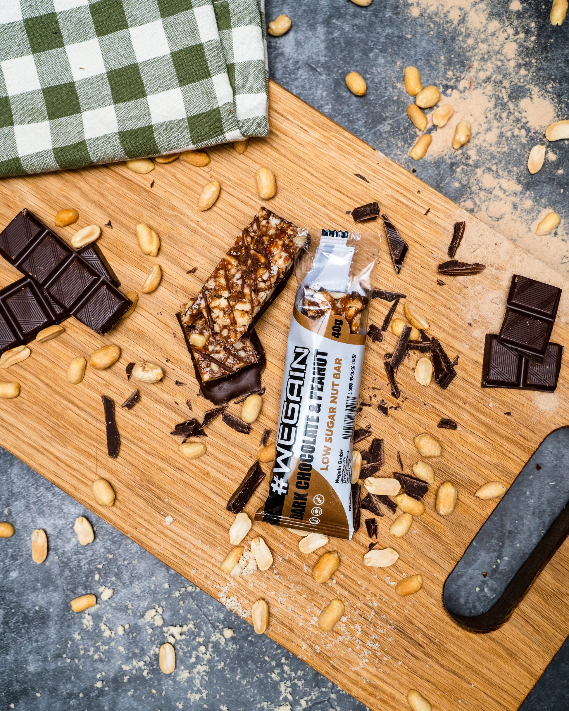 WEGAIN Baton cu ciocolată neagră și arahide, cu conținut scăzut de zahăr – răsfăț conștient, oriunde în drum