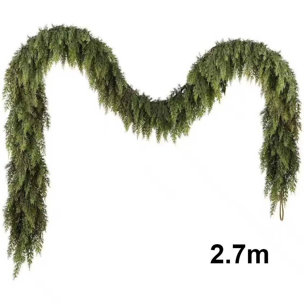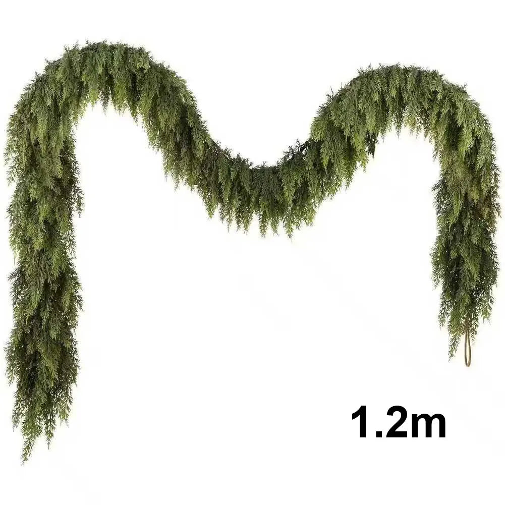 Weihnachts-Zeder-Girlande, künstliche Real-Touch-Grünkiefer mit flexiblen Zweigen für Kaminsims, Treppenhaus, Kamin-Dekoration