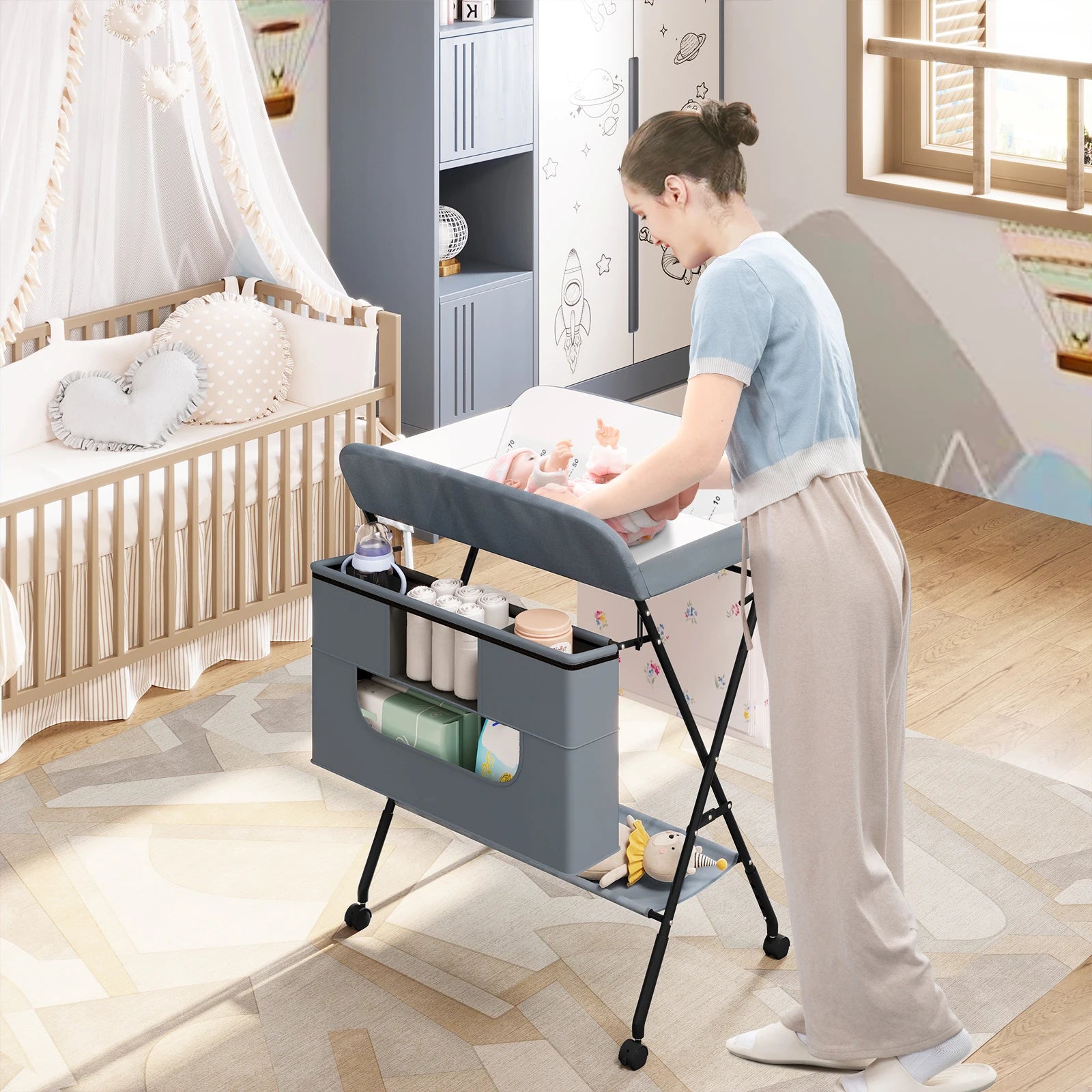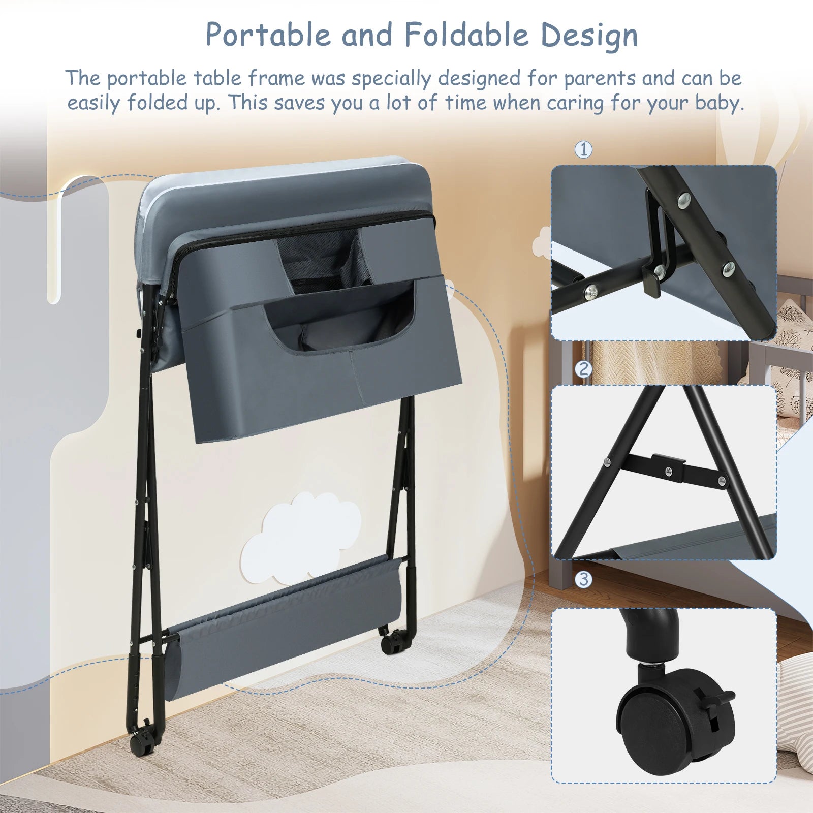 Masa de înfășat compactă, reglabilă pe înălțime, cu cadru metalic robust, spațiu practic de depozitare și roți cu rulare lină, facilitează îngrijirea zilnică a bebelușului și oferă mai multă libertate de mișcare acasă.