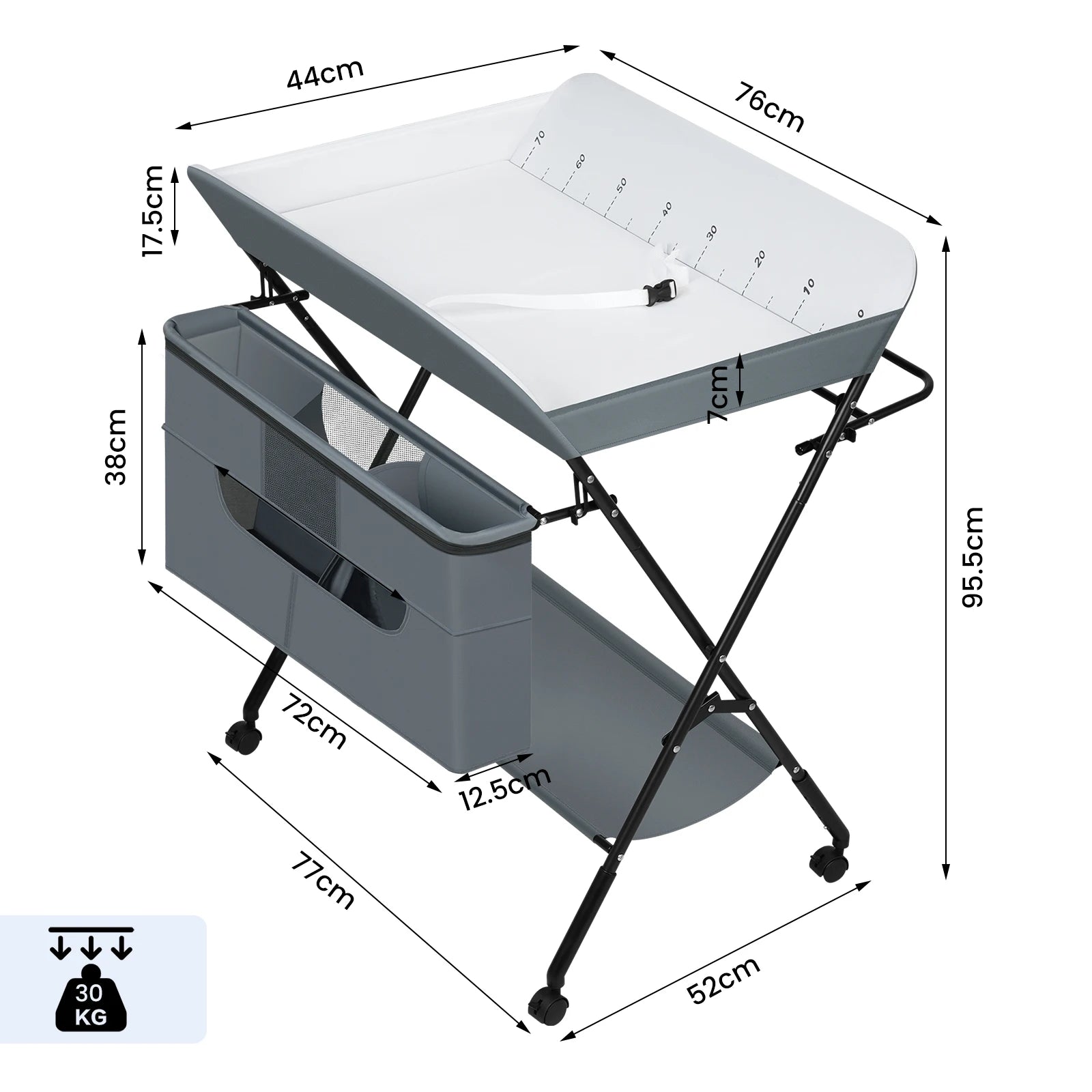 Masă de schimbat bebeluși 2025 - WOLTU Pliabilă, cu înălțime reglabilă - Depozitare cu roți, mobilier metalic pentru copii