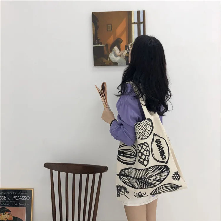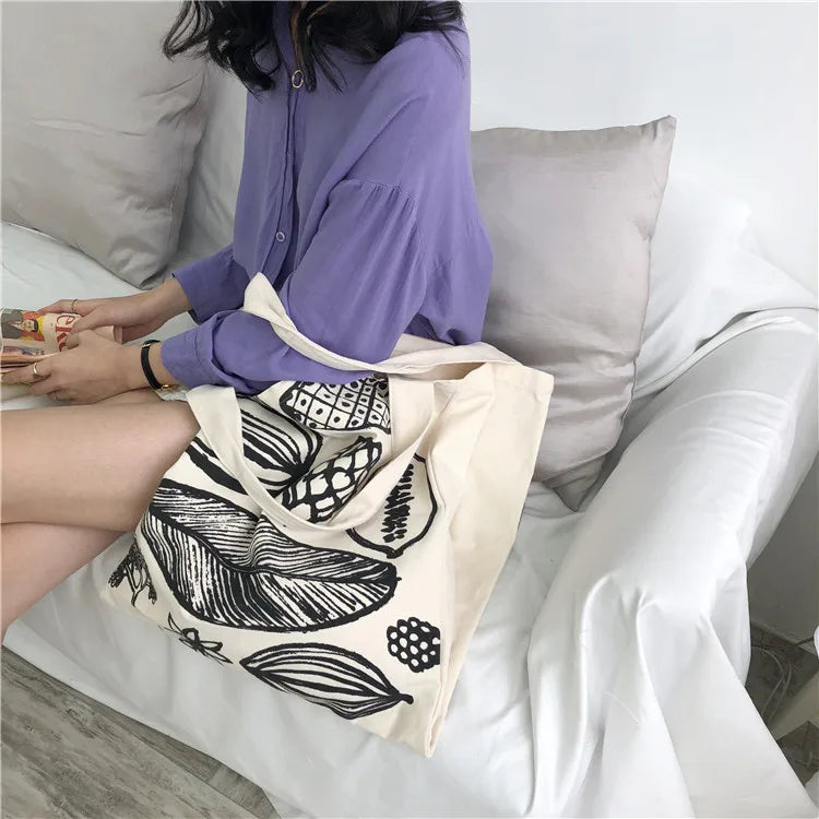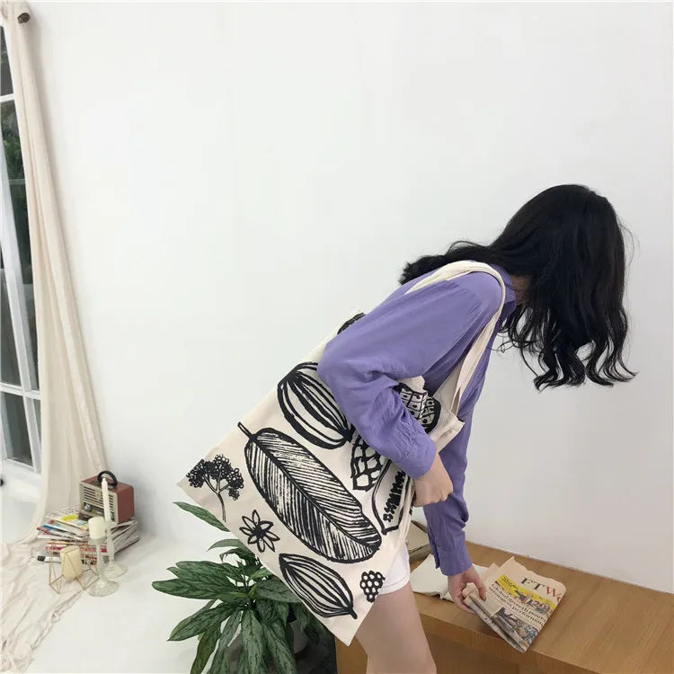 Stilul întâlnește sustenabilitatea: Geanta de umăr spațioasă din pânză cu model de frunze combină designul modern cu materiale durabile pentru utilizarea zilnică.