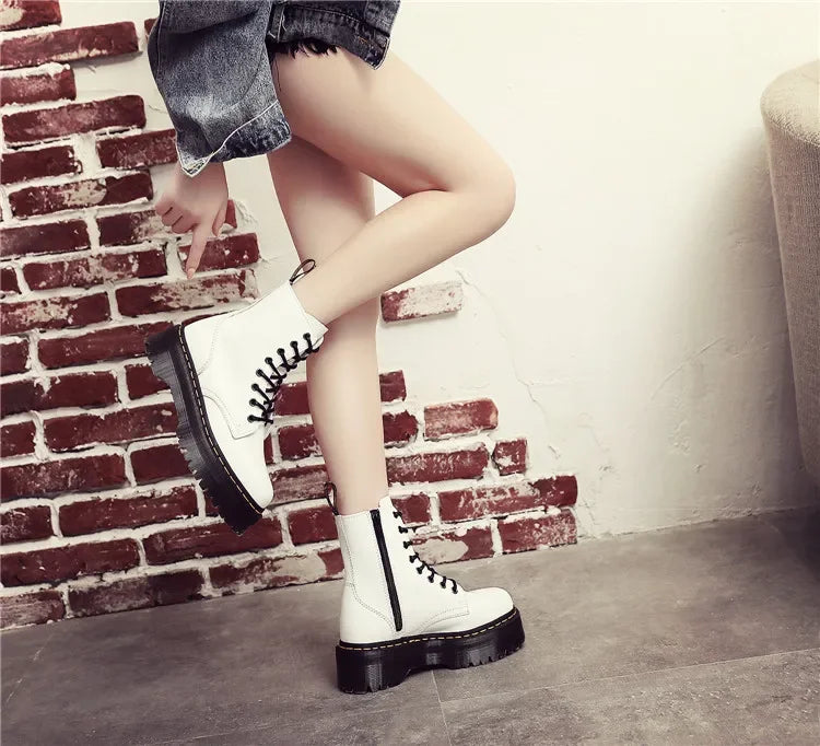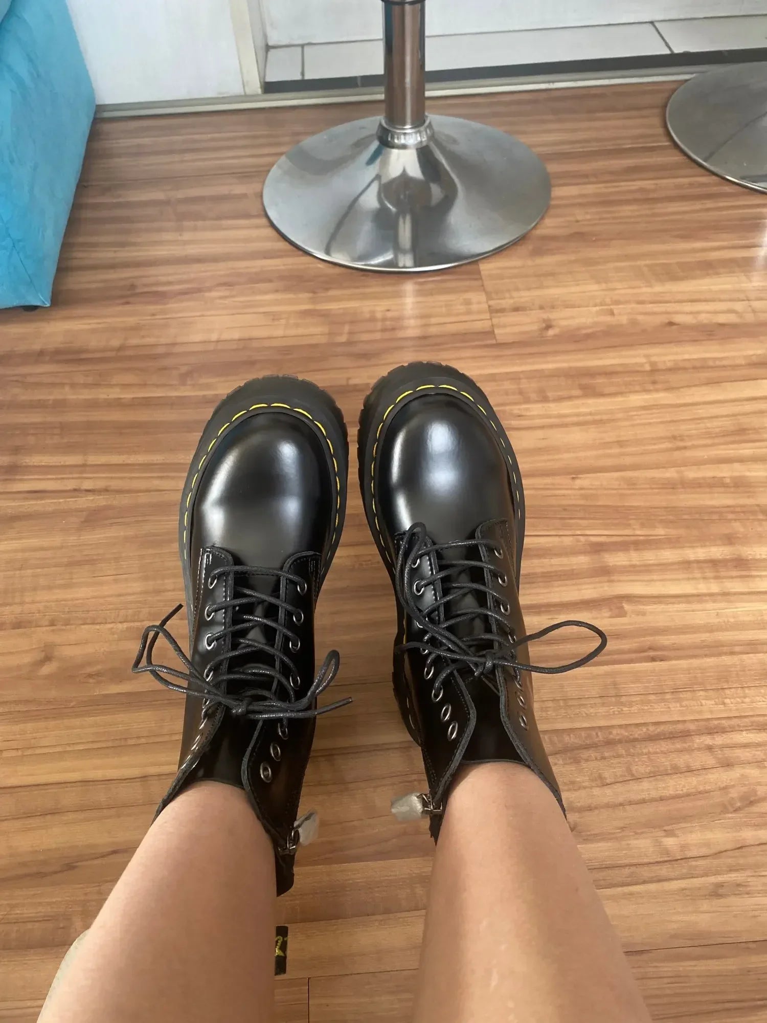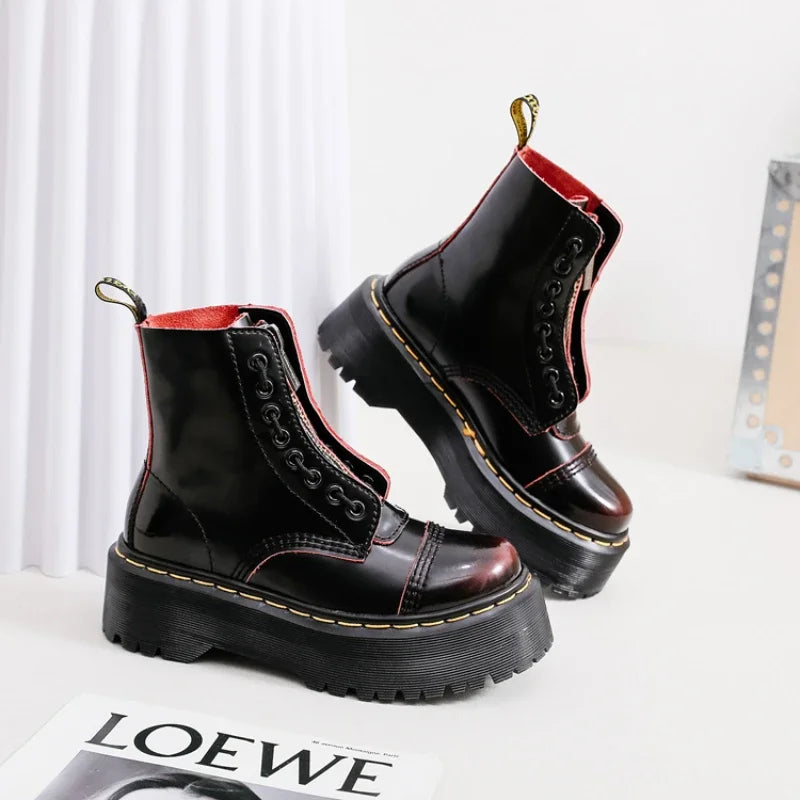 Ghete cu platformă din piele naturală CN Guangdong - Suport confortabil și aspect modern cu toc mediu