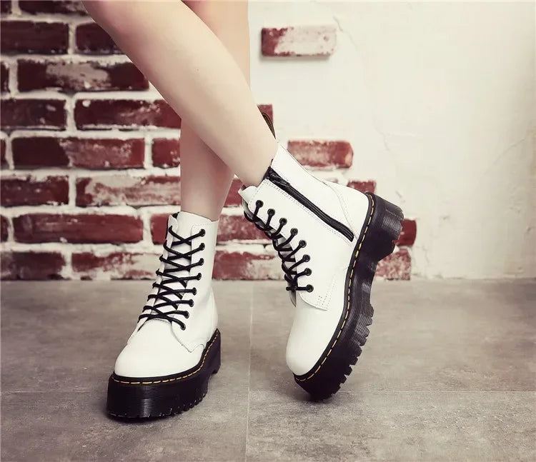 Ghete cu platformă din piele naturală CN Guangdong - Înălțimea tocului 3-5 cm, Platformă 2 cm, Mărimea EU 36-41