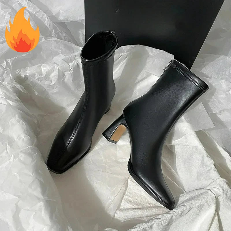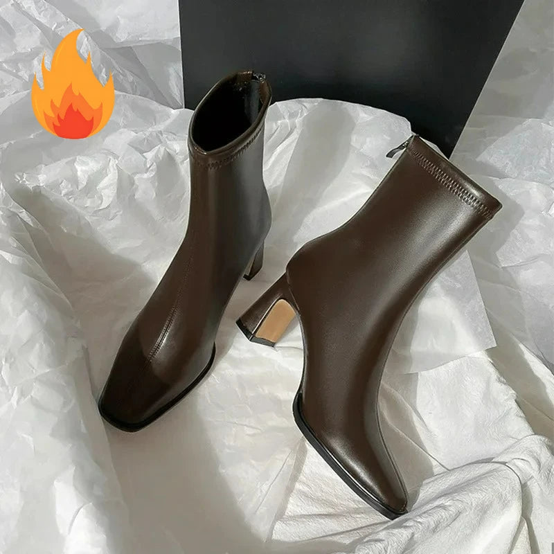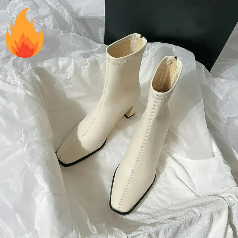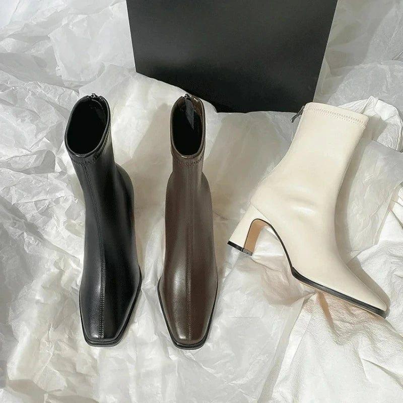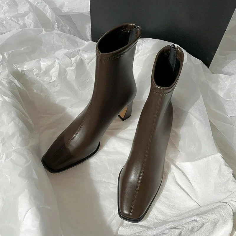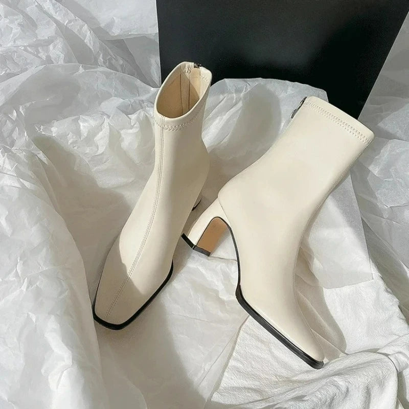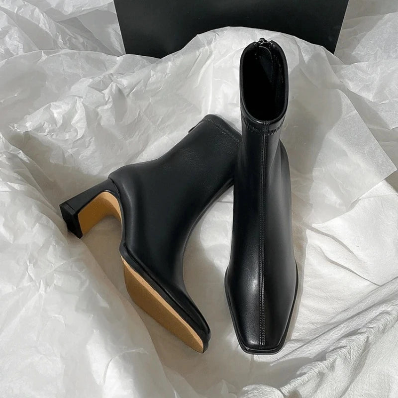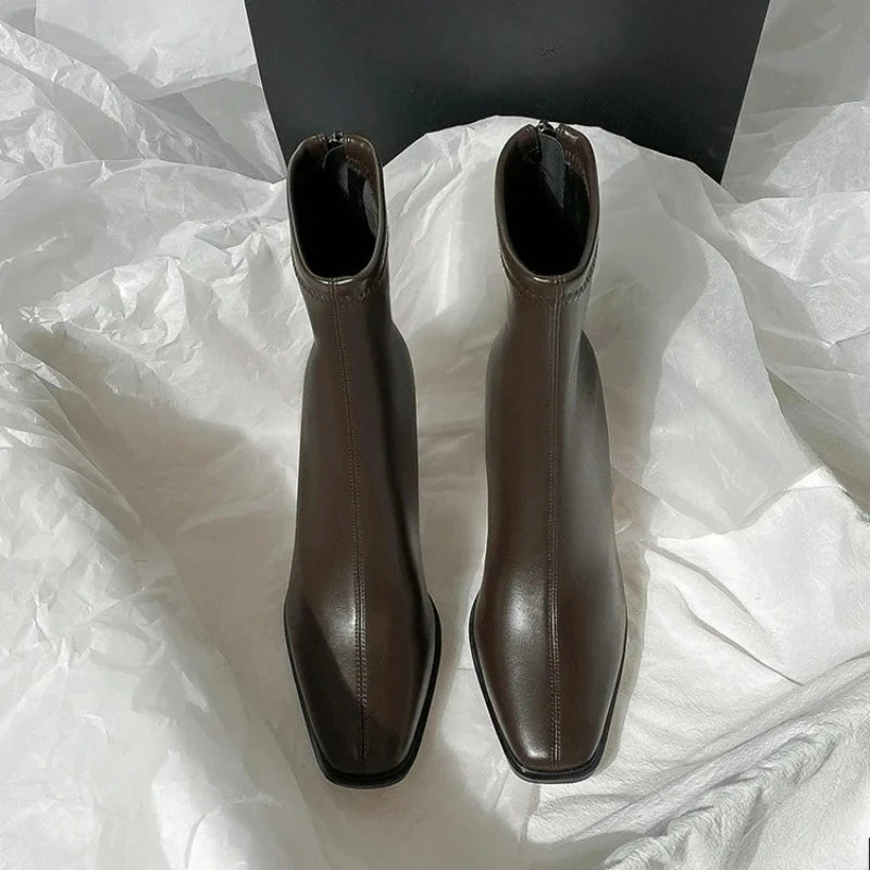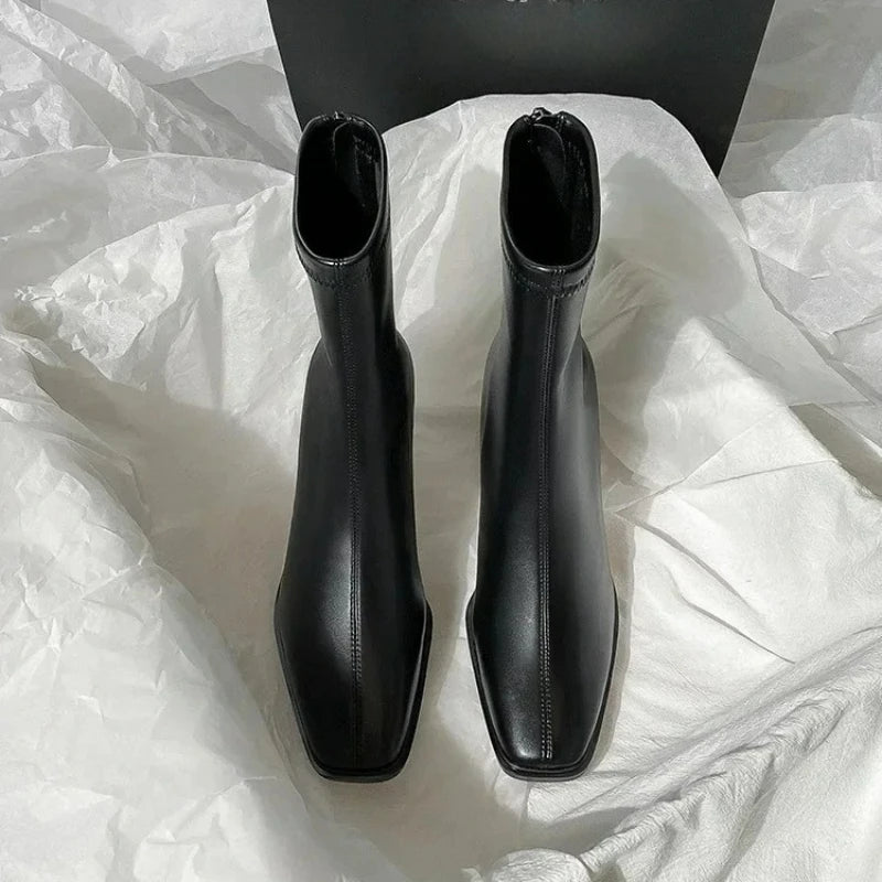 Ghete Chelsea din piele ecologică KTCZ cu fermoar și vârf pătrat – Aspect elegant cu toc de 5,5 cm