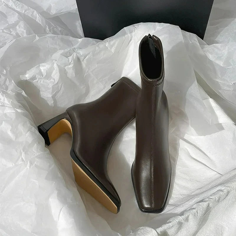 - Vârful pătrat conferă cizmelor o siluetă modernă și structurată, care se potrivește atât ținutelor casual, cât și celor mai elegante.