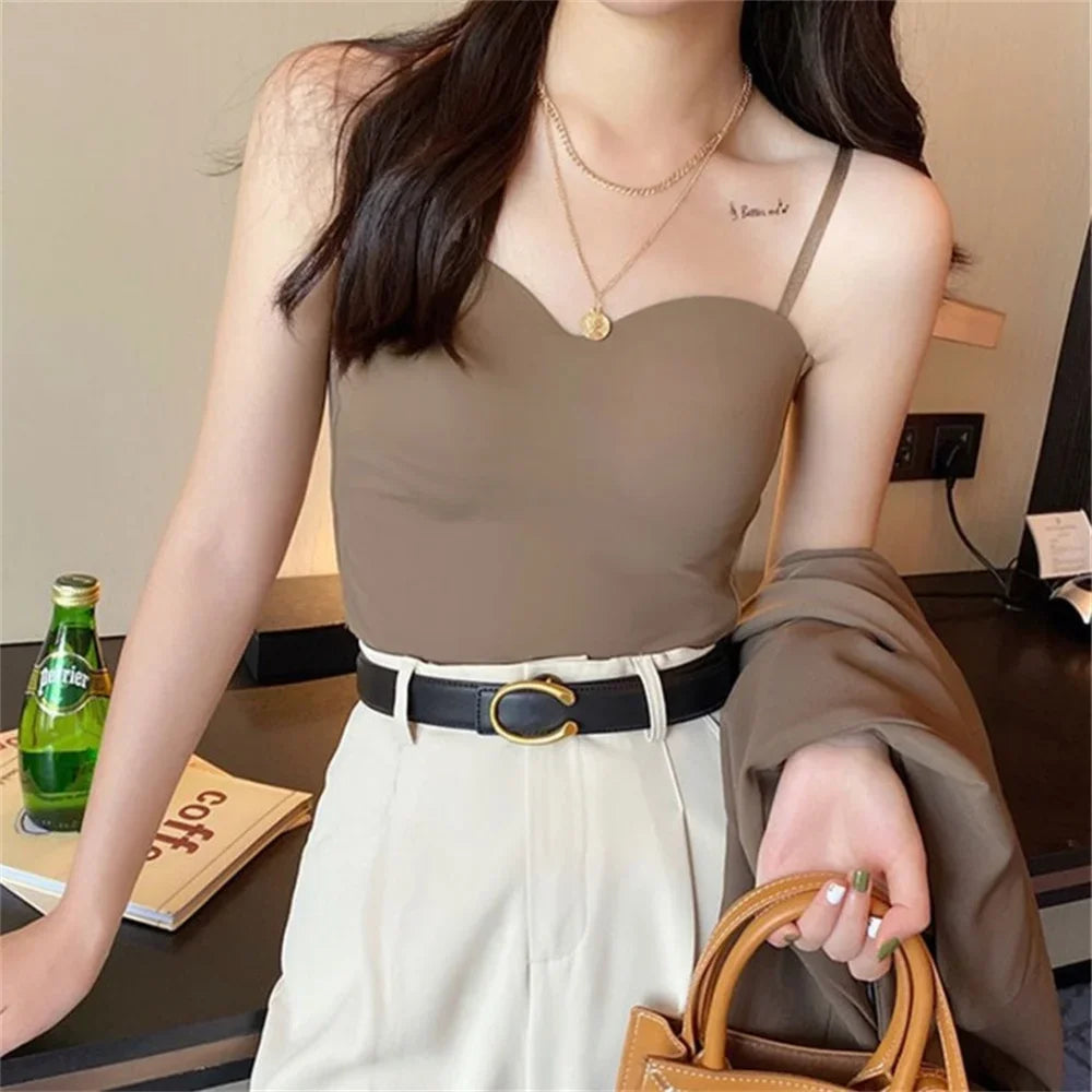 Femei elegant Top sutien Backless sport lenjerie intimă culoare solidă fără mâneci subțiri umeri vară maiou Cupă gheață mătase confort bretele