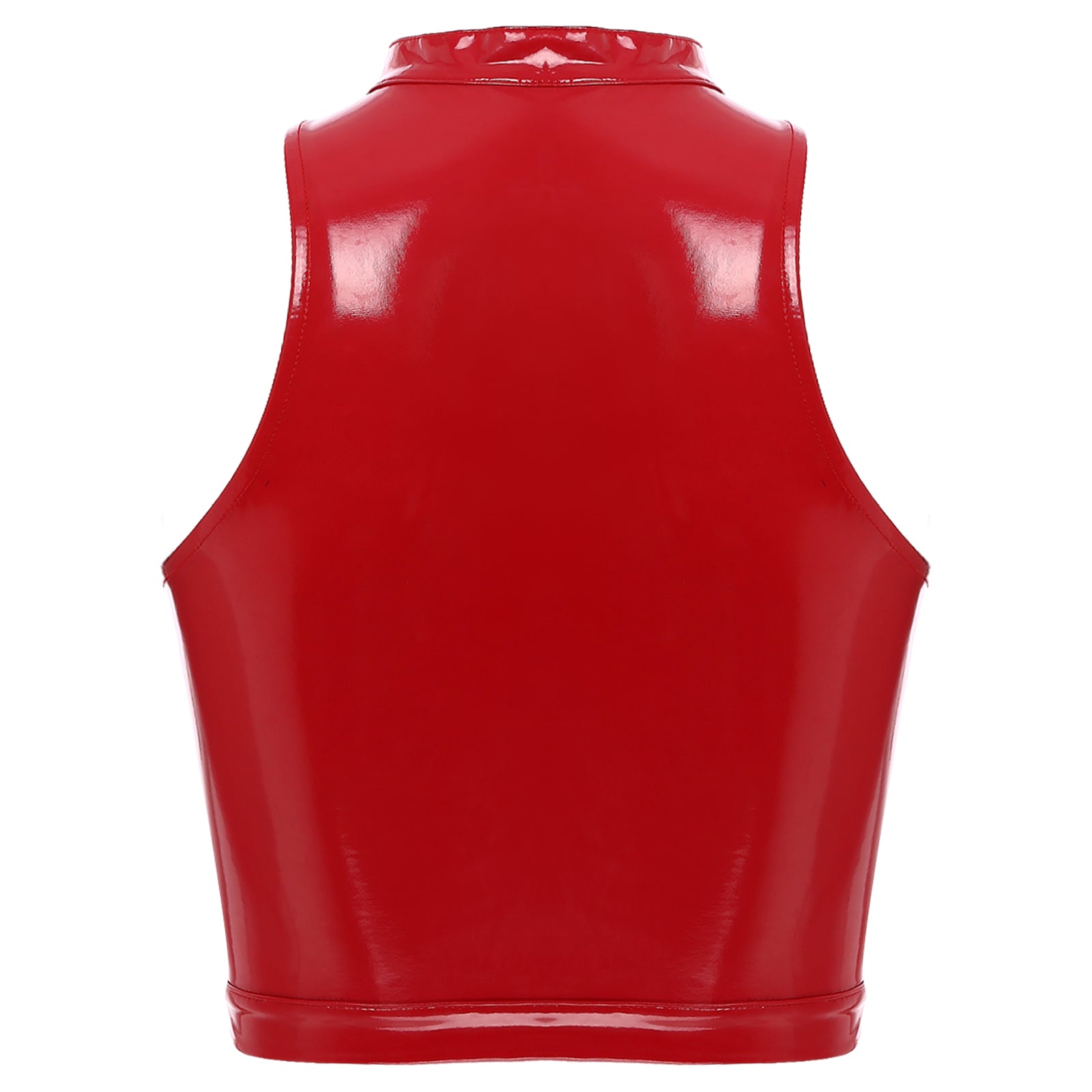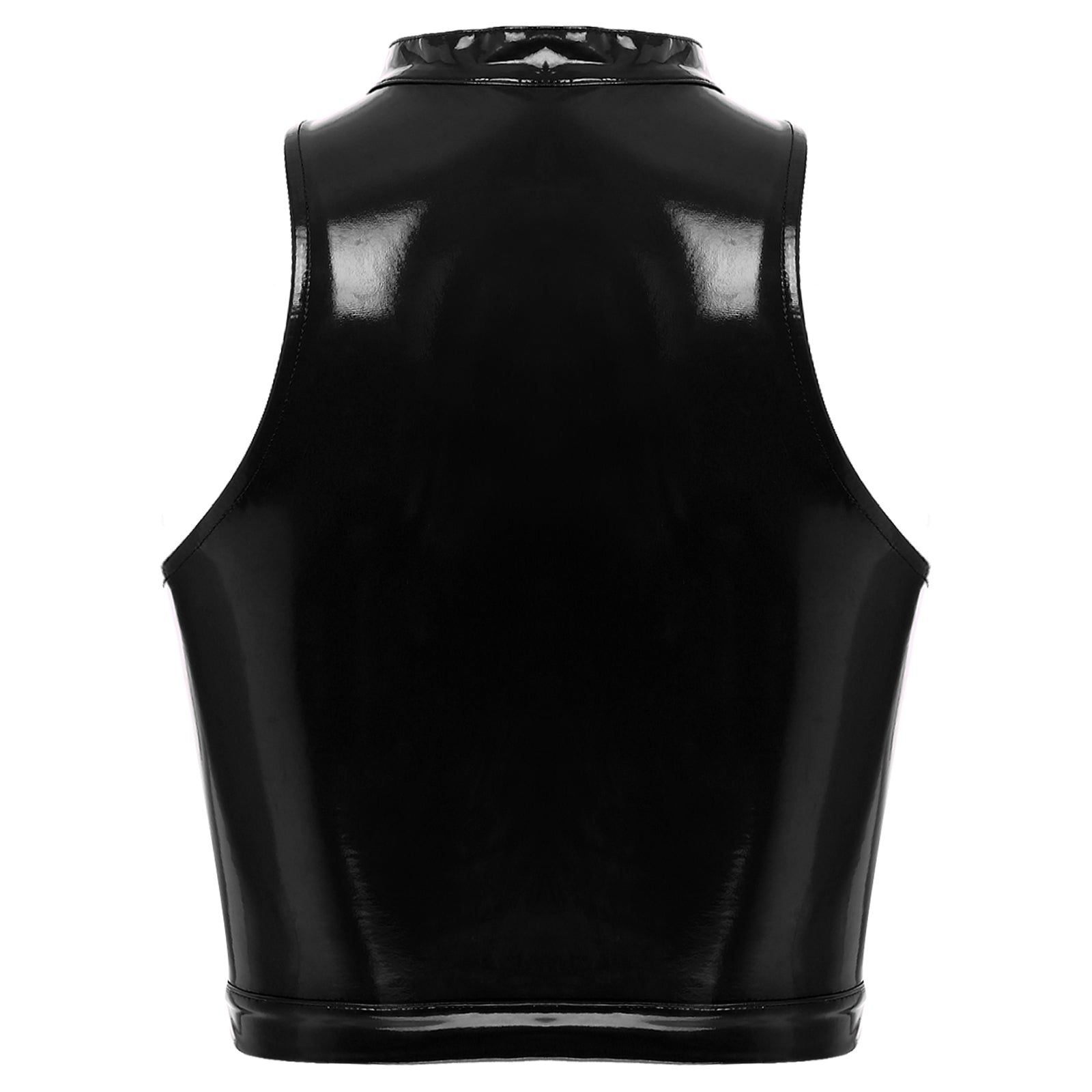 Vestă de damă din piele lăcuită lucioasă, din latex, topuri, ținute Rave, club, corset lucios, vestă, cu rever crestat, Slim Fit, camisol, top scurt